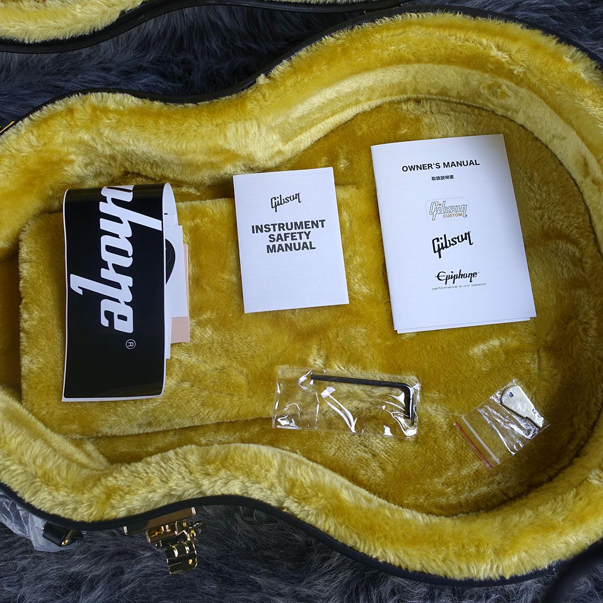 ギブソンスタイルのオープンブックヘッドストックの上面には、マザーオブパールスプリットダイヤモンドインレイとエピフォンロゴのインレイがあしらわれ、ギア比18:1のGrover Locking Rotomaticチューナーを含むゴールドハードウェア等、目を引く仕様に溢れています。