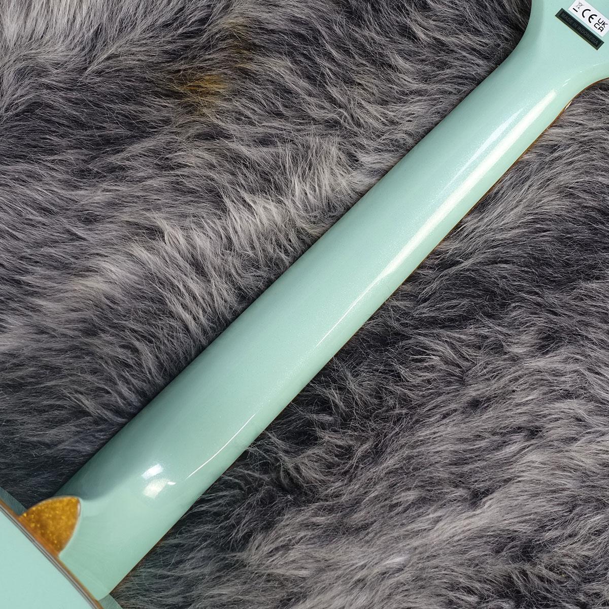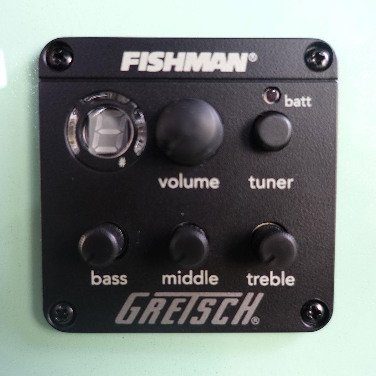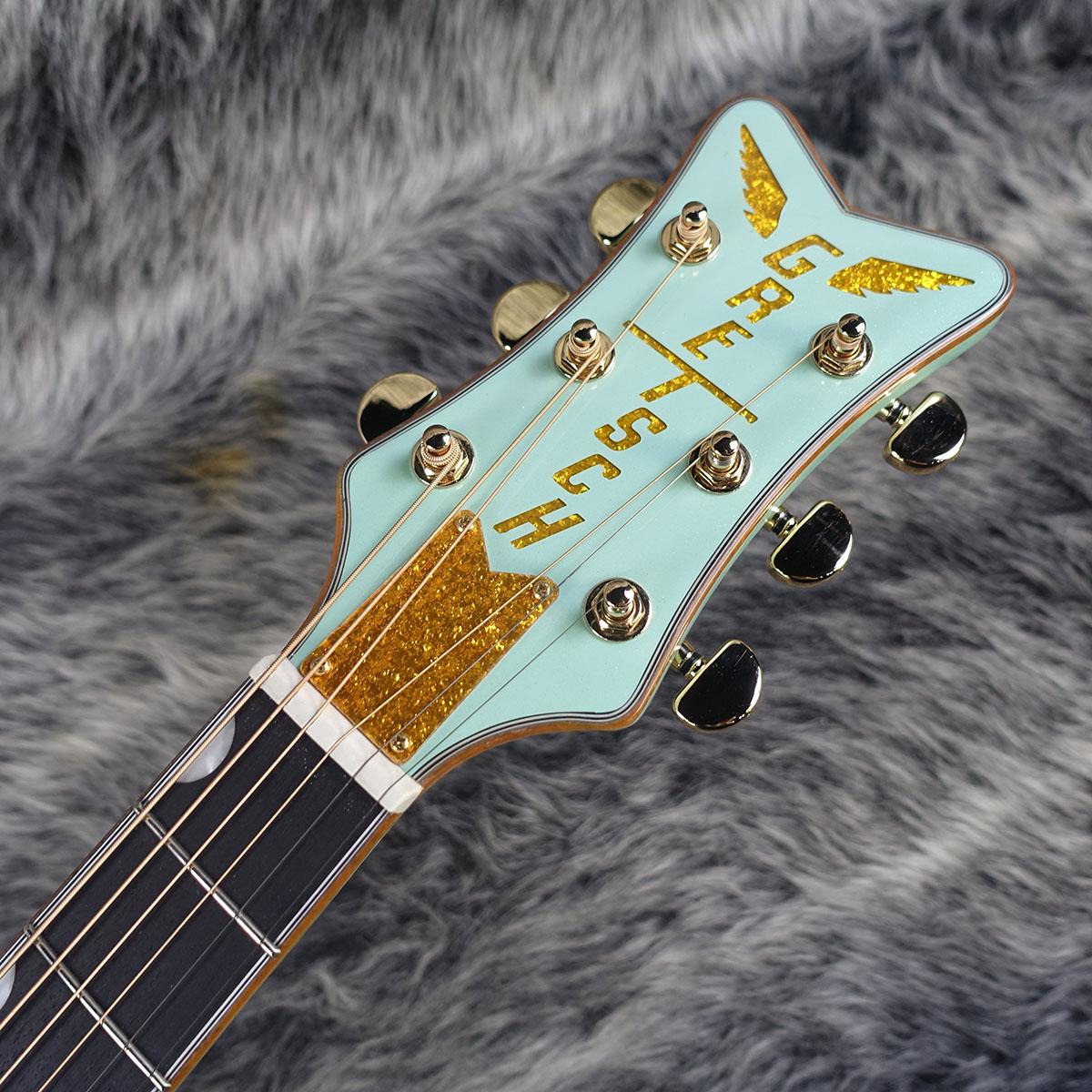 ソリッドスプルース・トップ、メイプル・バック&サイドを使用した本機のクラシックなタッチに、ゴールドスパークルを使用したネックとボディのバインディング、指板のNeo-Classicサムネイルインレイ、ゴールドのプレキシピックガード、ヘッドストックに"バーティカルウィング"グレッチロゴなどを採用しています。