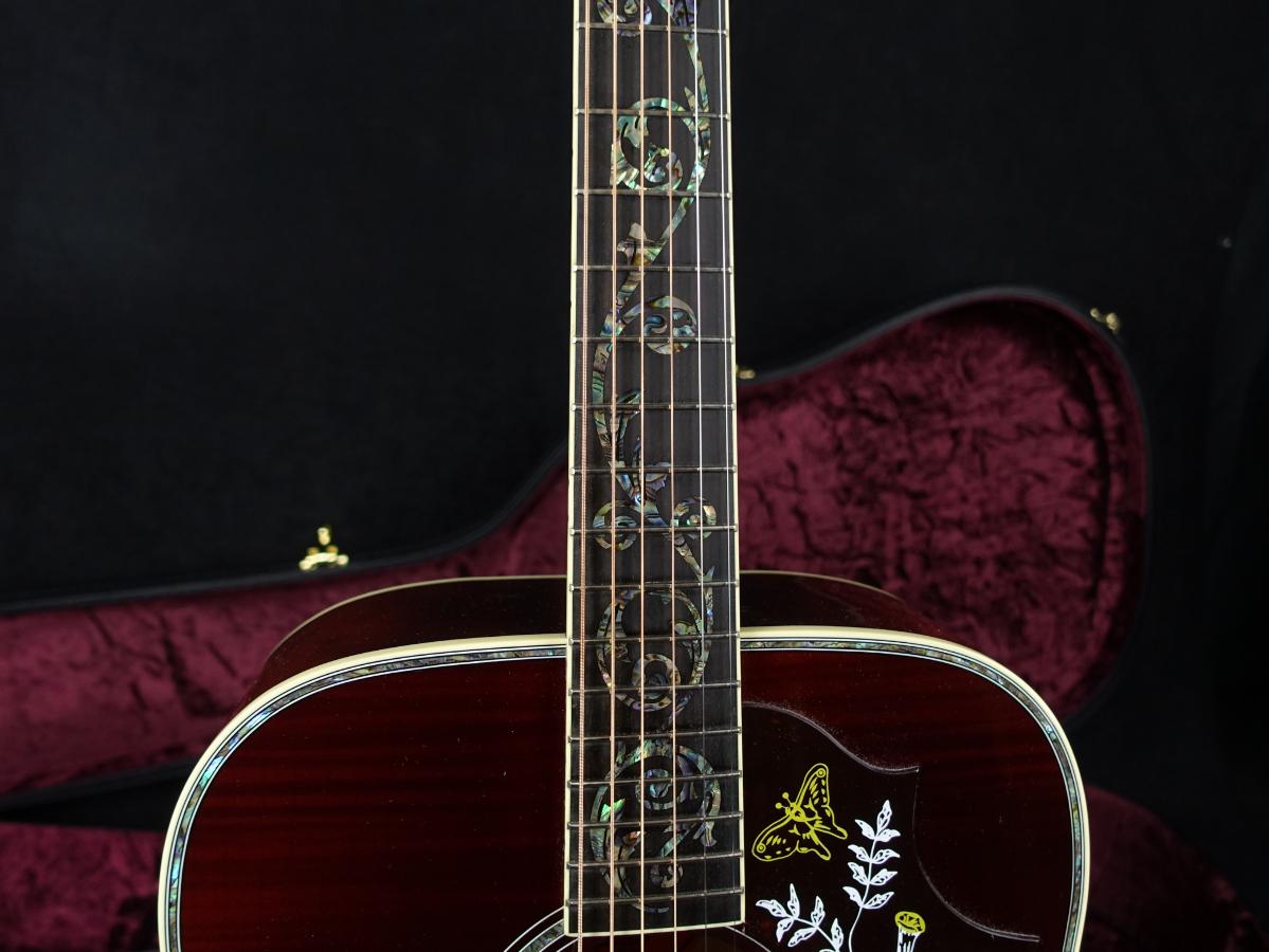 その他のプレミアムな特徴として、ゴールド・ウェイバリー・チューナー、マザー・オブ・パールのトラスロッドカバー、そしてギターのフィニッシュとカラーコーディネートされたグラフィックが刻まれたハミングバード・ピックガードなどが挙げられます。