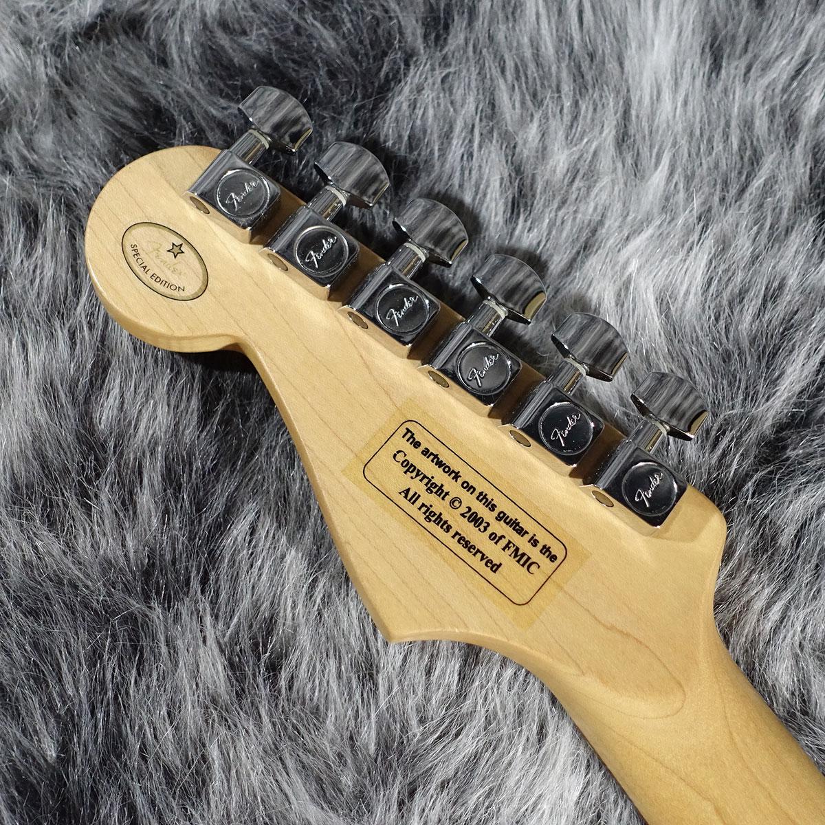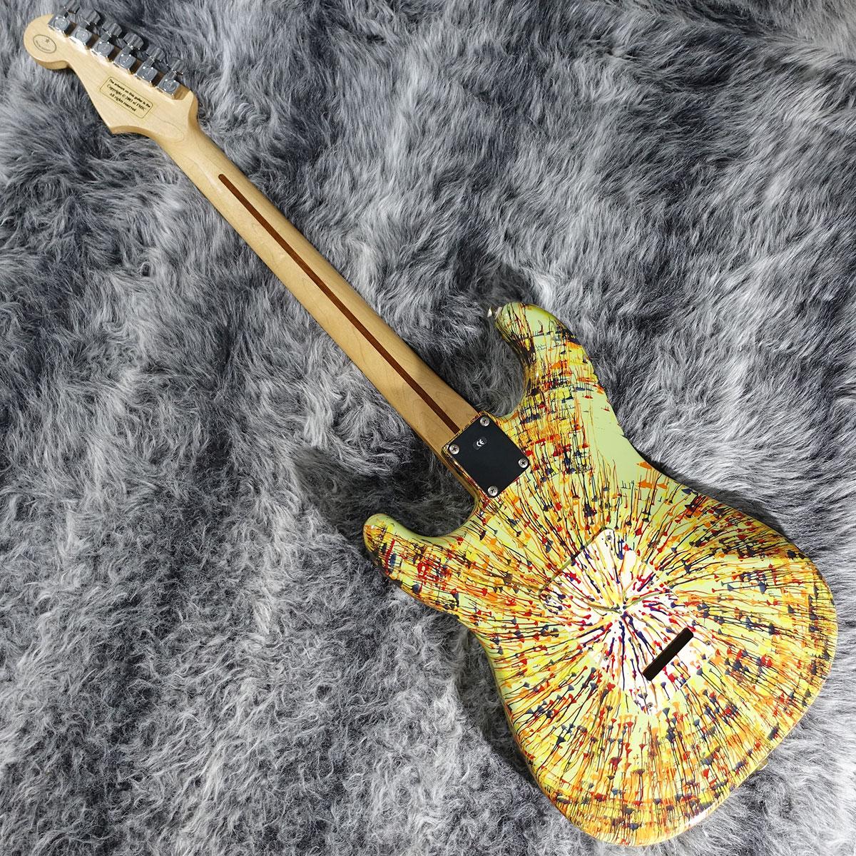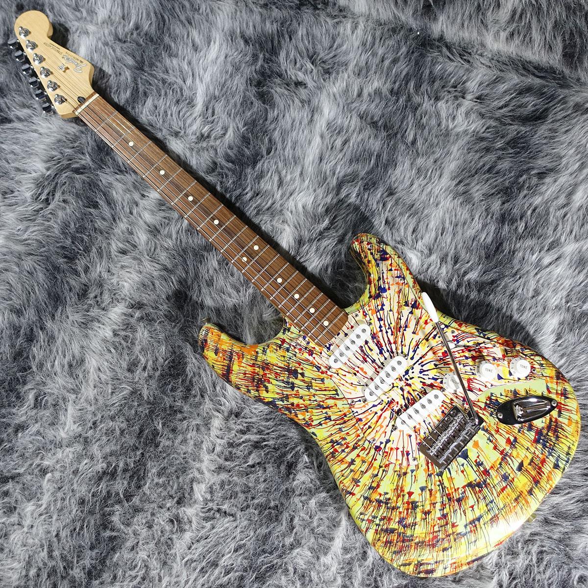Mexico製の"Standard Stratocaster"にハンドペイントで放射状の模様を描く"Splatter Finish"を施したものですが、日本では"HANABI Stratocaster"という名称で流通していたようです。