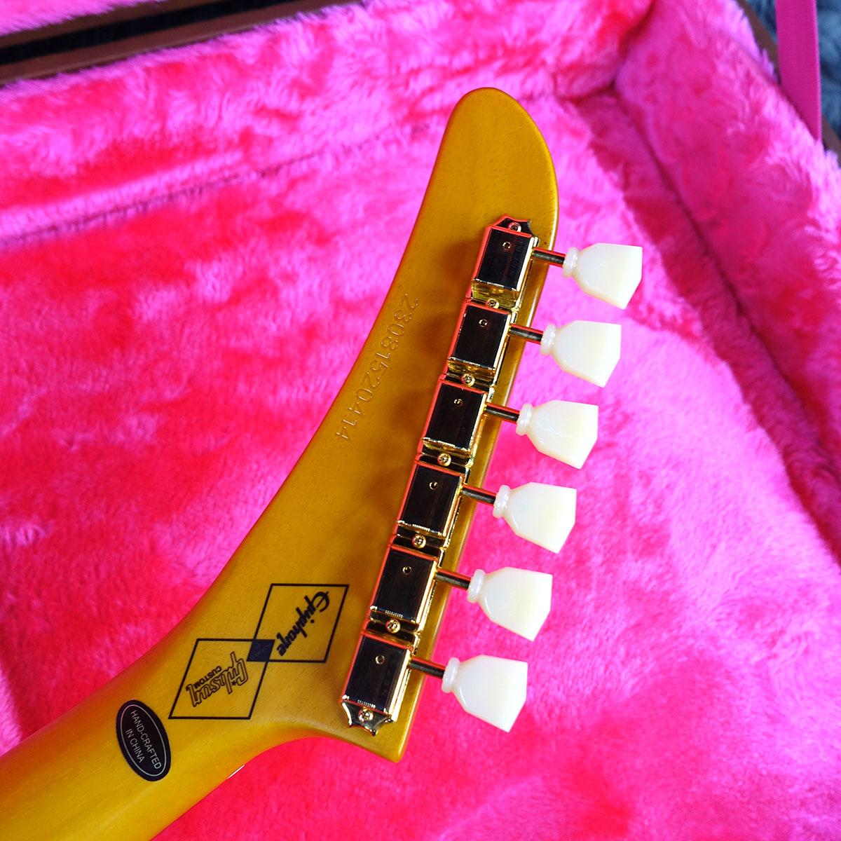ヘッドストック裏にはEpiphone x Gibson Customロゴがあしらわれており、同様のロゴ入りハードシェルケースが付属されています。