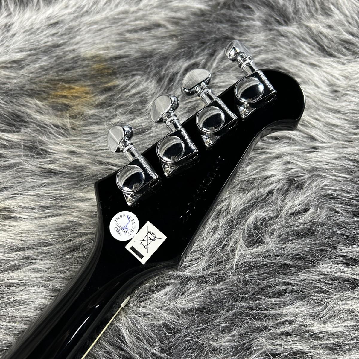 リバース仕様 Firebirdを彷彿とさせるボディにはソリッド・ナトーウッドを採用。トラ ペゾイド・インレイが施されたネックはボルトオン・ジョイントでボディに接合されてい ます。4つのGrover Mini Rotomaticチューナーを備えたReverse Firebirdスタイ ルのヘッドストック、ボディトップにマウントされた裏通しタイプのブリッジ、 Epiphone Firebirdピックアップとマスターボリューム&トーンコントロール等を装備。 エピフォンのギグバッグも付属しています。