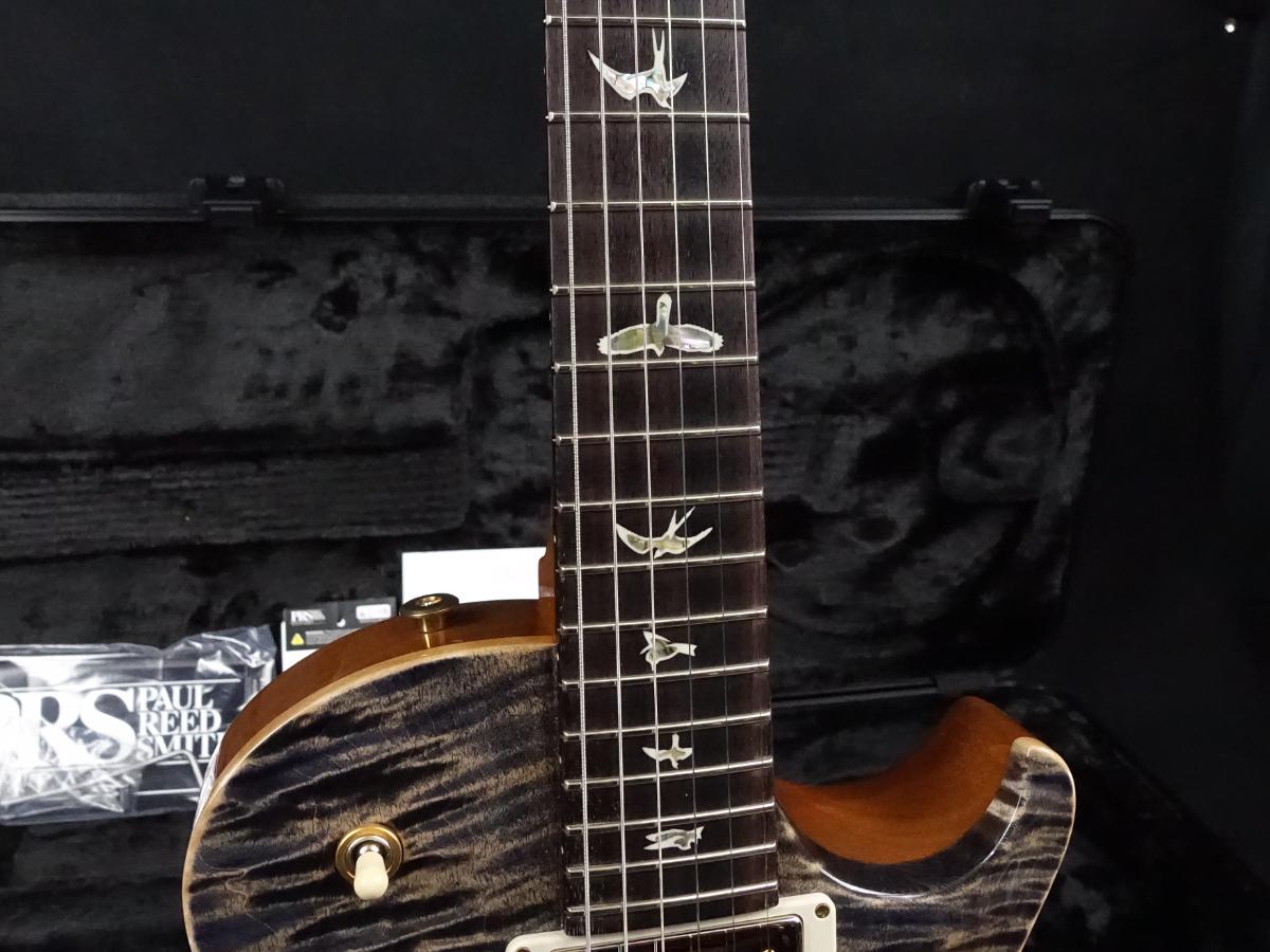 ウッドマテリアルは10Topのメイプル材にバック材にはマホガニー、マホガニーネックに、ローズウッド指板とスタンダードな仕様。