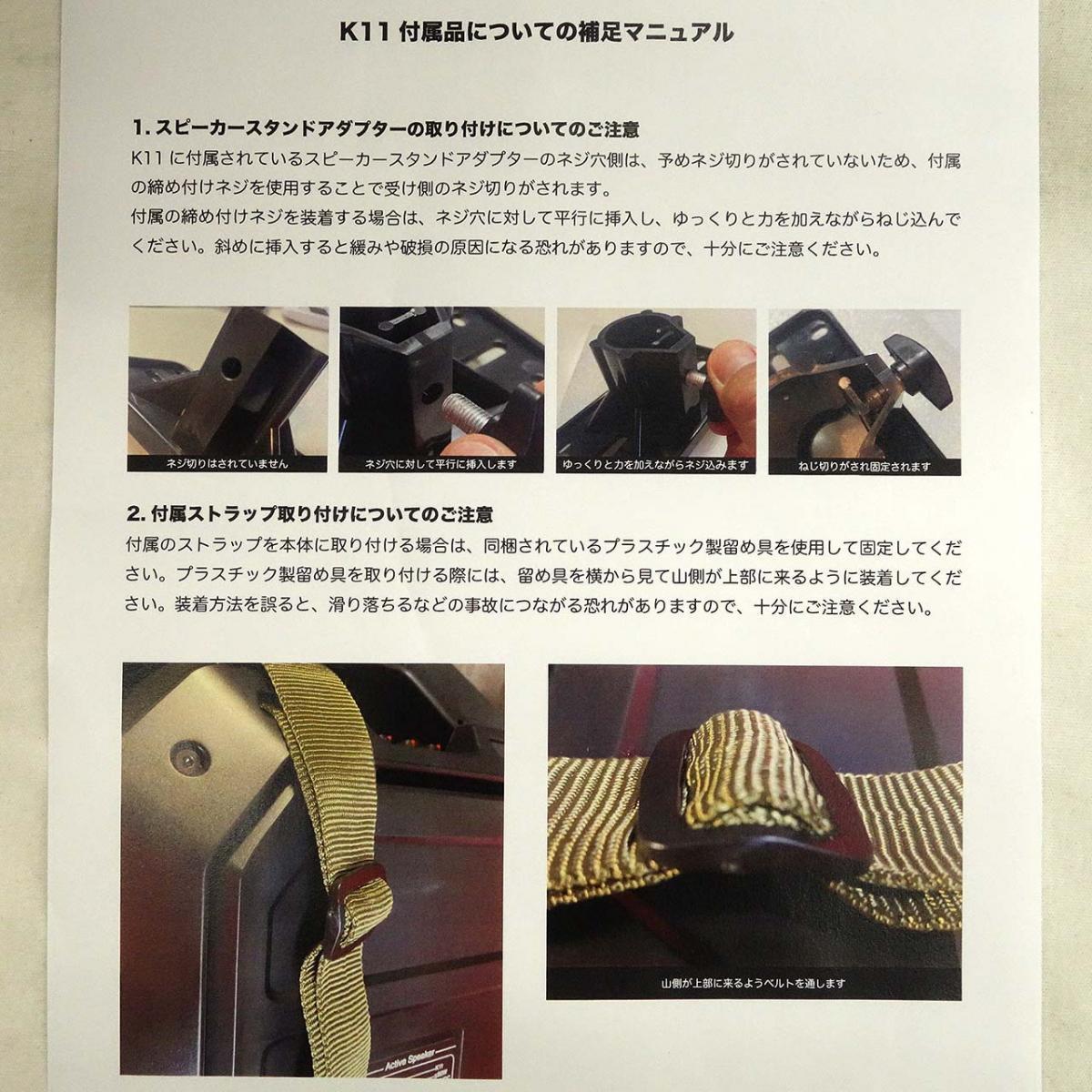K11は、ワイヤレスマイク×1、Bluetooth接続機能、デジタル録音/再生機能、ブロードキャスティング用ラインアウトを備えた、リチウムイオン充電池内蔵のポータブルPAスピーカーです。