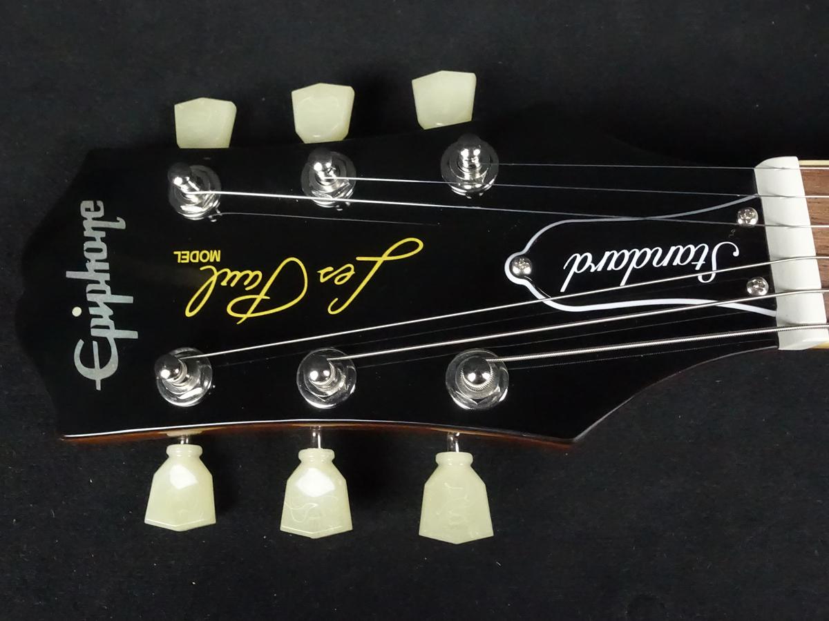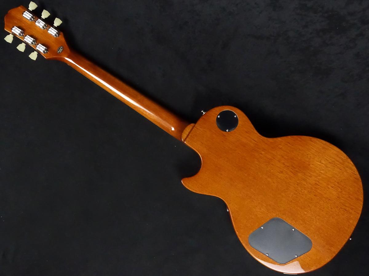 エピフォン・レスポール・スタンダード50sは、グロス仕上げのマホガニー・ボディにメイプルトップの材構成。