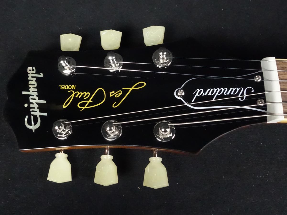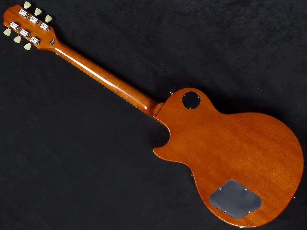 エピフォン・レスポール・スタンダード50sは、グロス仕上げのマホガニー・ボディにメイプルトップの材構成。