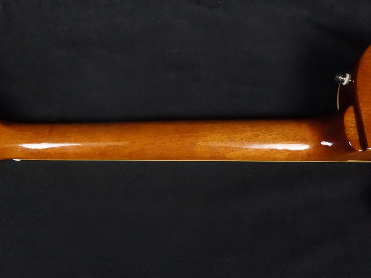 ロング・ネック・テノン仕様でジョイントされた50sシェイプ・マホガニー・ネック、クラシカルなディッシュ・インレイが施されたインディアン・ローレル指板。