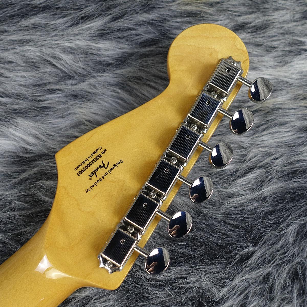 ヘッドやネックは50年代のStratocasterにインスパイアされた仕上げとなっており、本格的なオールドスクールの風格をまとっています。