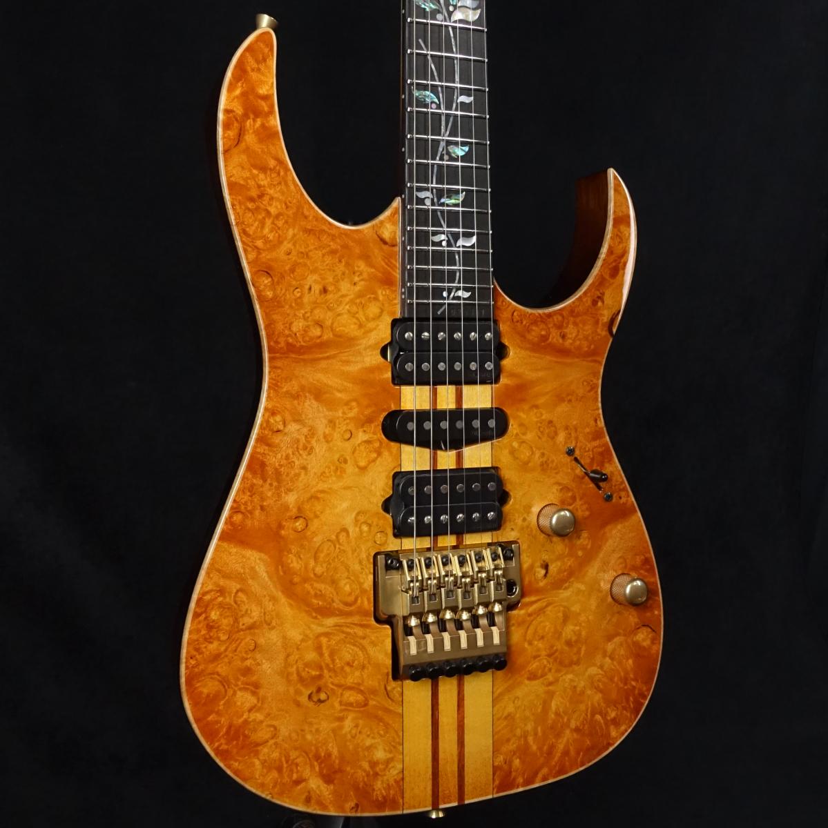 瘤状の杢目が独特で美しいバール・メイプル材(4mm厚)をボディ・トップに採用しました。ボディには黒系の縞模様が特徴的で、太くあたたかみがある中音域をもちながら、クリアで明るいサウンドが特長のブラック・リンバ材を採用しています。