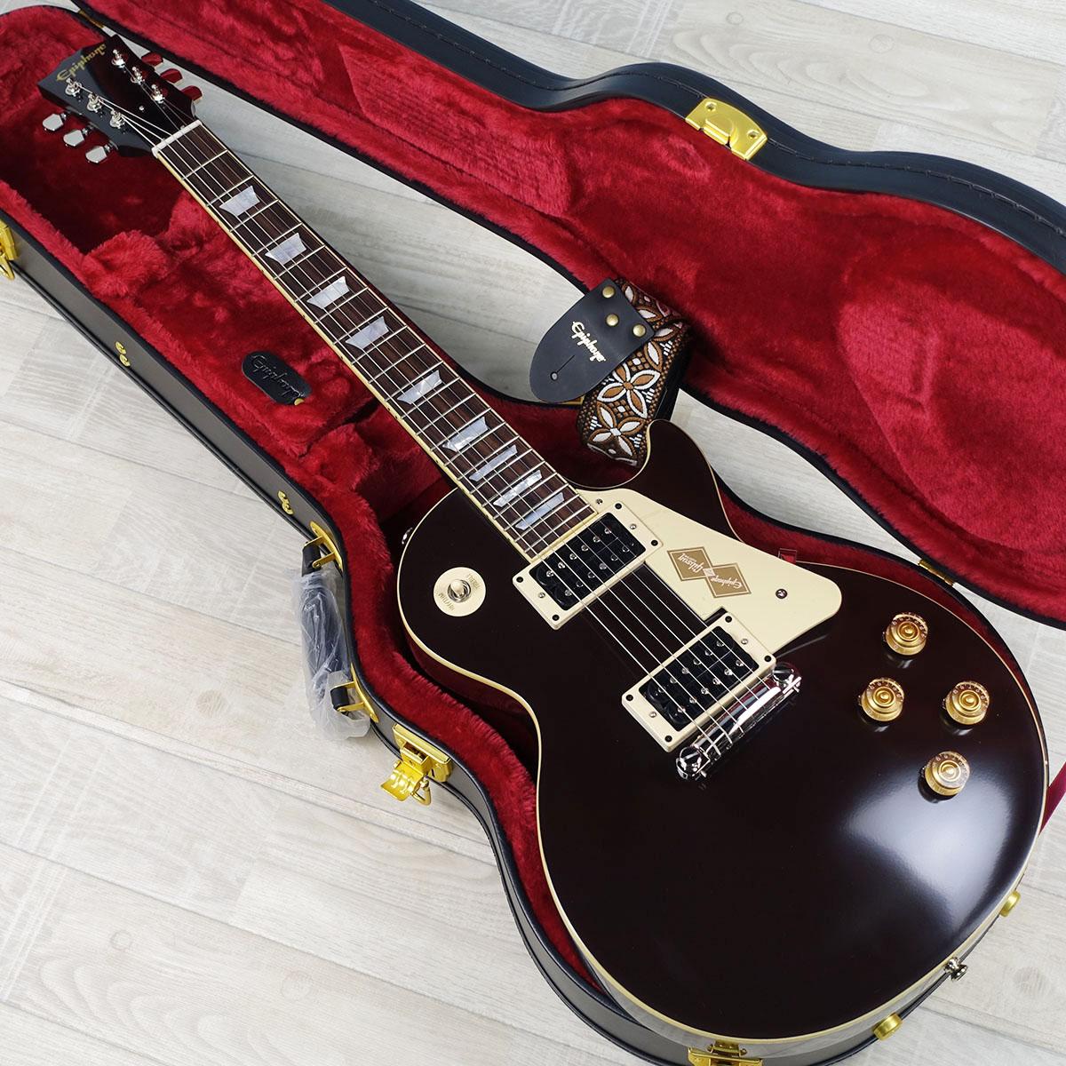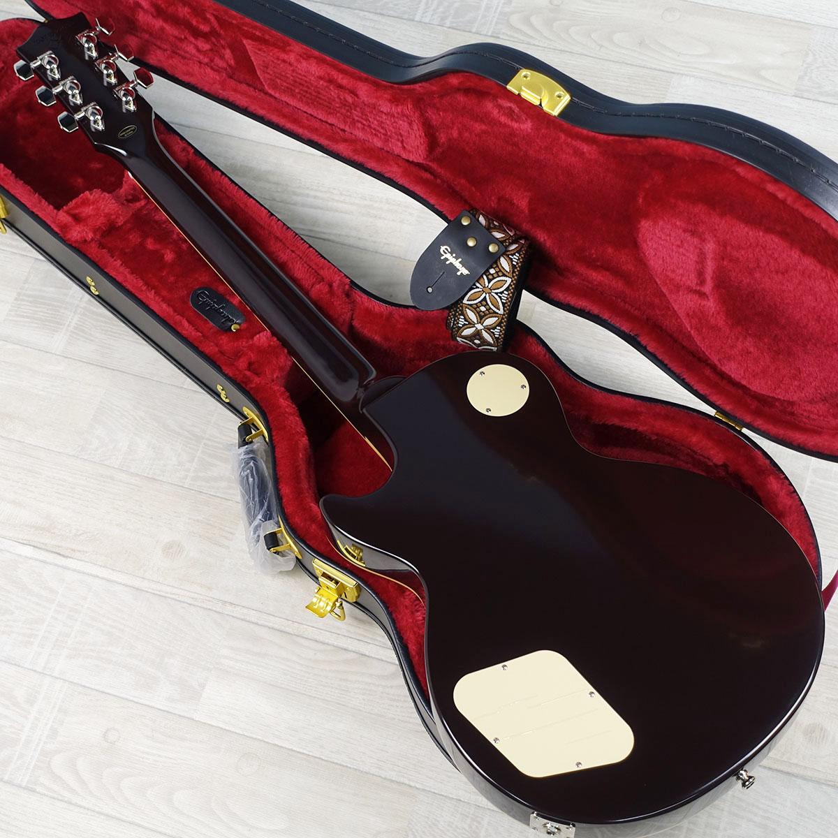 ヴィンテージ・スタイルのレプリカ・ストラップとInspired by Gibson Customグラフィック入りのEpiphoneハードシェル・ケースが付属します。