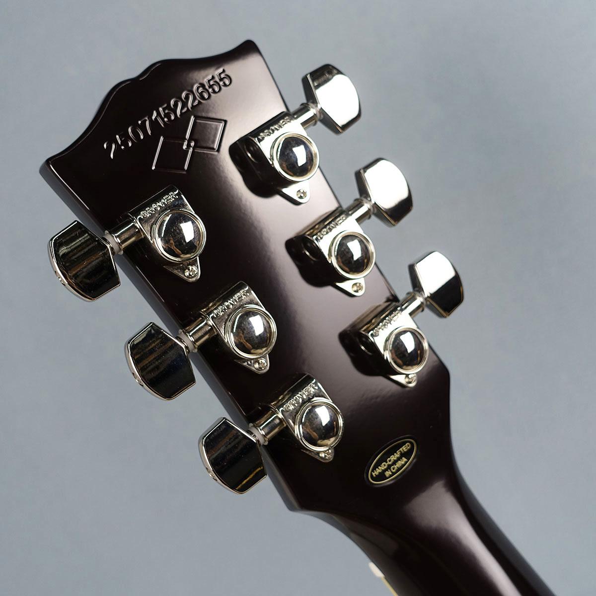 ヘッドストックはギブソン伝統の“オープンブック”スタイルを踏襲し、エイジド・マザー・オブ・パール素材によるEpiphoneロゴが埋め込まれています。