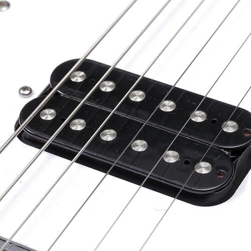 Tectonic Audio Labs製の広指向性スピーカーを搭載。100Hz ‒ 20kHzフルレンジで、広指向性で180°の方向に音を飛ばす特徴により、スピーカーの正面でなくても音がよく聴こえる構造を採用しています。演奏者にとっても音を聴き取りやすいので、ギターに搭載するのにピッタリなスピーカーと言えるでしょう。また、今までのスピーカー付きギターには「低音が物足りない」「ハウリングしやすい」といった弱点がありましたが、新設計のギター専用エンクロージャーにパッシブ・ラジエーターを搭載することで、一般的なスピーカー付きギターよりも遥かに音質が良くなりました。また、スピーカーユニットを免震構造にする事で、スピーカー付きギターの難点であるハウリングに強い構造となっています。低音から高音までバランス良くワイドレンジに出力しながら、エンクロージャーのハウリング対策を両立して実現する、まさに次世代のスピーカー付きギターです。