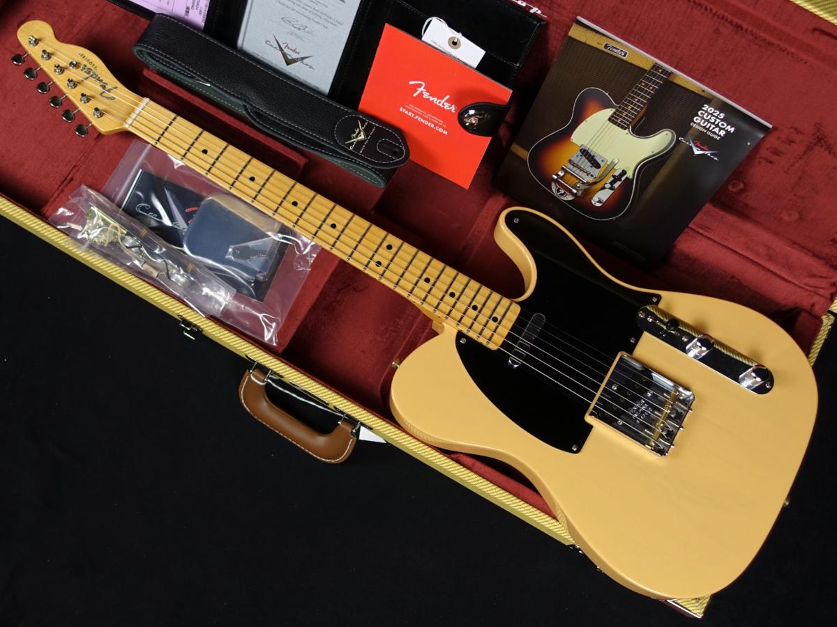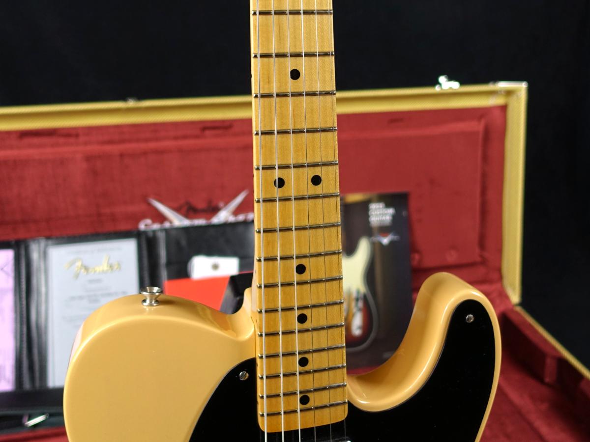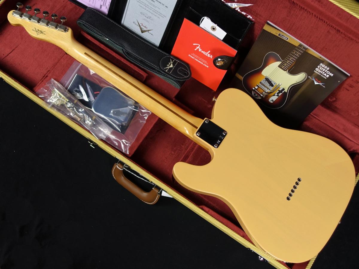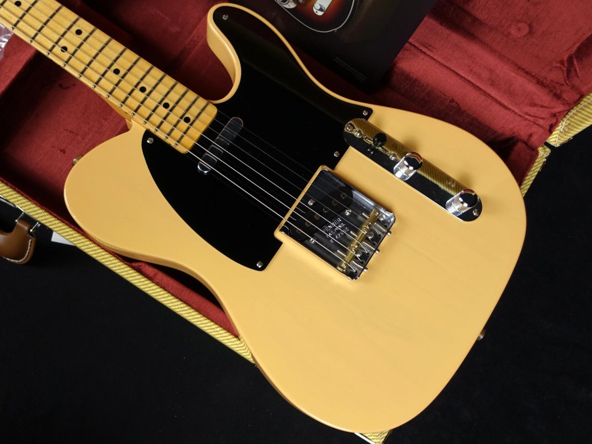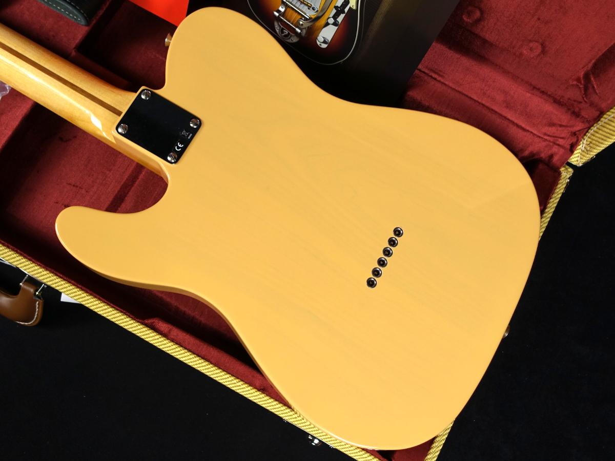 NOSフラッシュコートラッカーのNocaster Blonde塗装、Closet Classicハードウェア、ブラックのフェノールピックガード、'51〜'54 Teleブリッジ、ブラスサドル、ラウンドストリングツリー、を搭載しています。
