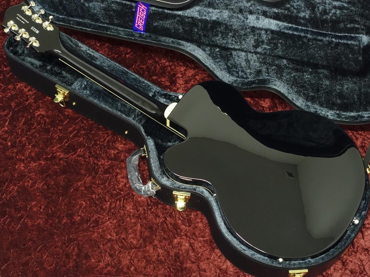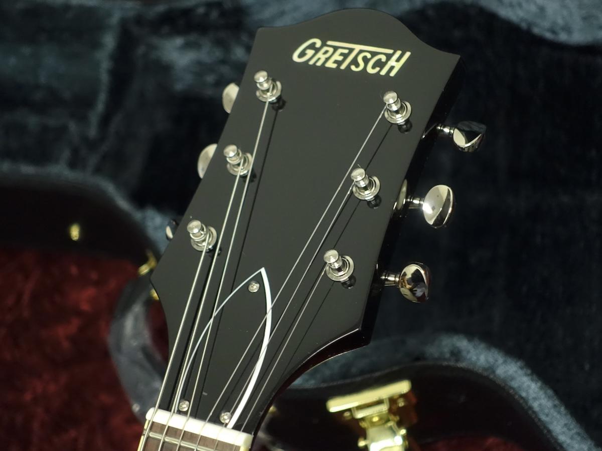 ニッケルメッキのGアロー・ノブ、エイジド・ホワイトバインディング、ラッカーフィニッシュ、パーロイド・サムネイルインレイなど、細部までヴィンテージライクな仕様を採用。グレッチロゴ入りの厚みあるシルバー・プレキシピックガードやGrover Sta-Titeチューナーなど、ファンが望む伝統的なディテールも網羅しています。