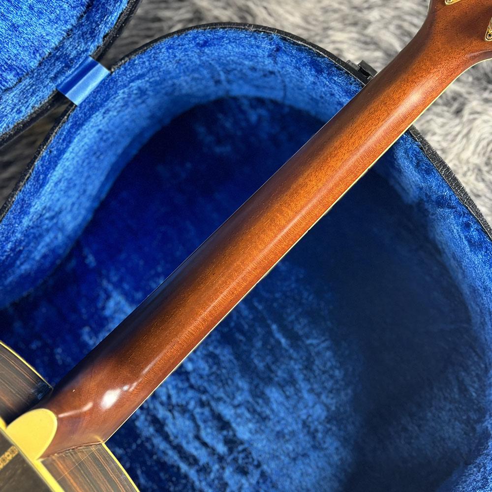 当時としてはシリーズの中でも普及モデルといった位置付けでしたが、今よりも木材が豊富にあった時代ならではの良質な木材や、アバロンによるバインディングやロゼッタ、オリジナルのポジションマーク、ゴールドハードウェアの採用など贅沢な仕様。現在で同じスペック(日本製の総単板ボディ)のものとなるとなかなか手の届かない価格帯になってきます。