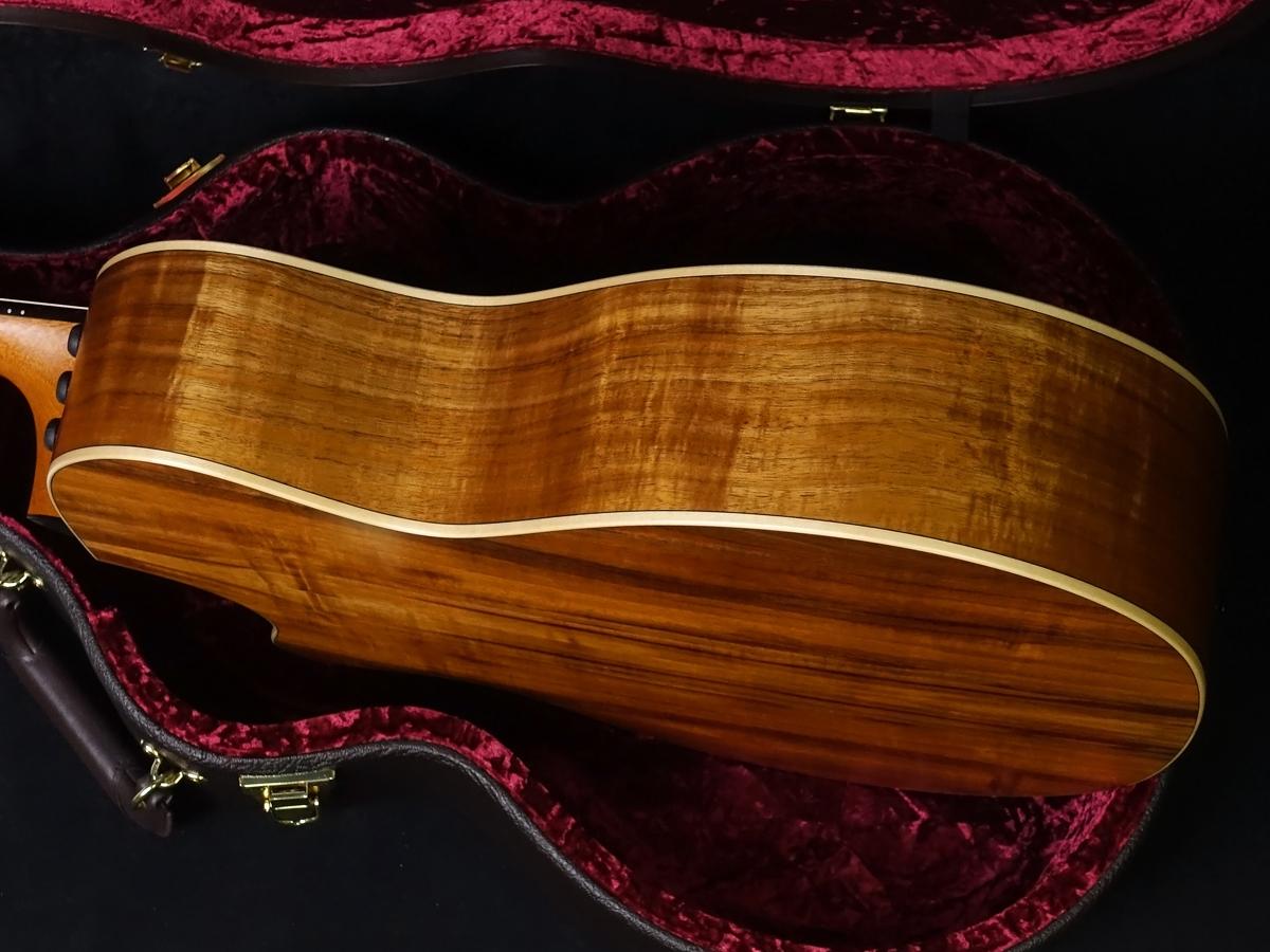 ボディ材は希少なコア材を用い、特にボディトップのコア材は美しい杢目で満足感も一入。