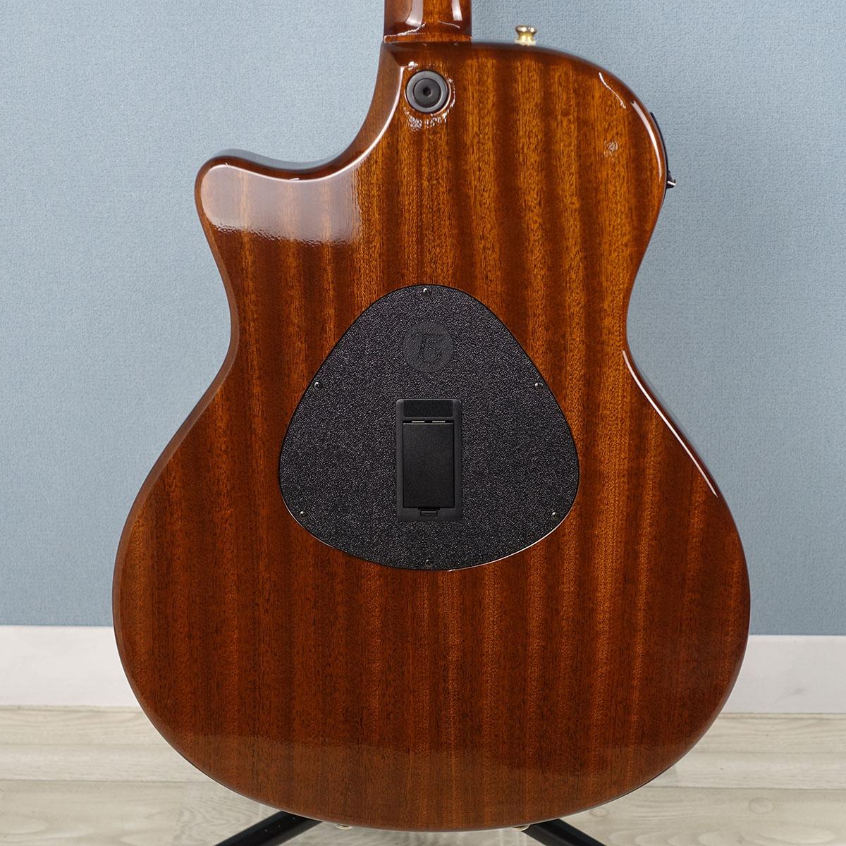外側から見えるピックアップはリップスティック型のマグネティックのみですが、ネックエンド付近にもマグネティックPUを内蔵、またブリッジ下内部にはボディセンサーを搭載。