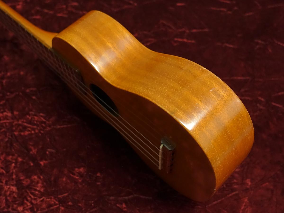 詳細な資料が無い為外観からの判断ではございますが、マホガニー材を使用したボディにマホガニーネック、ローズウッドフィンガーボードを12フレットでセットしたウッドマテリアルでございます。