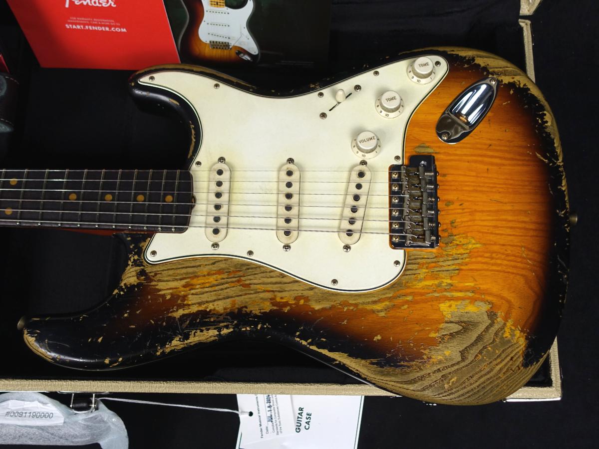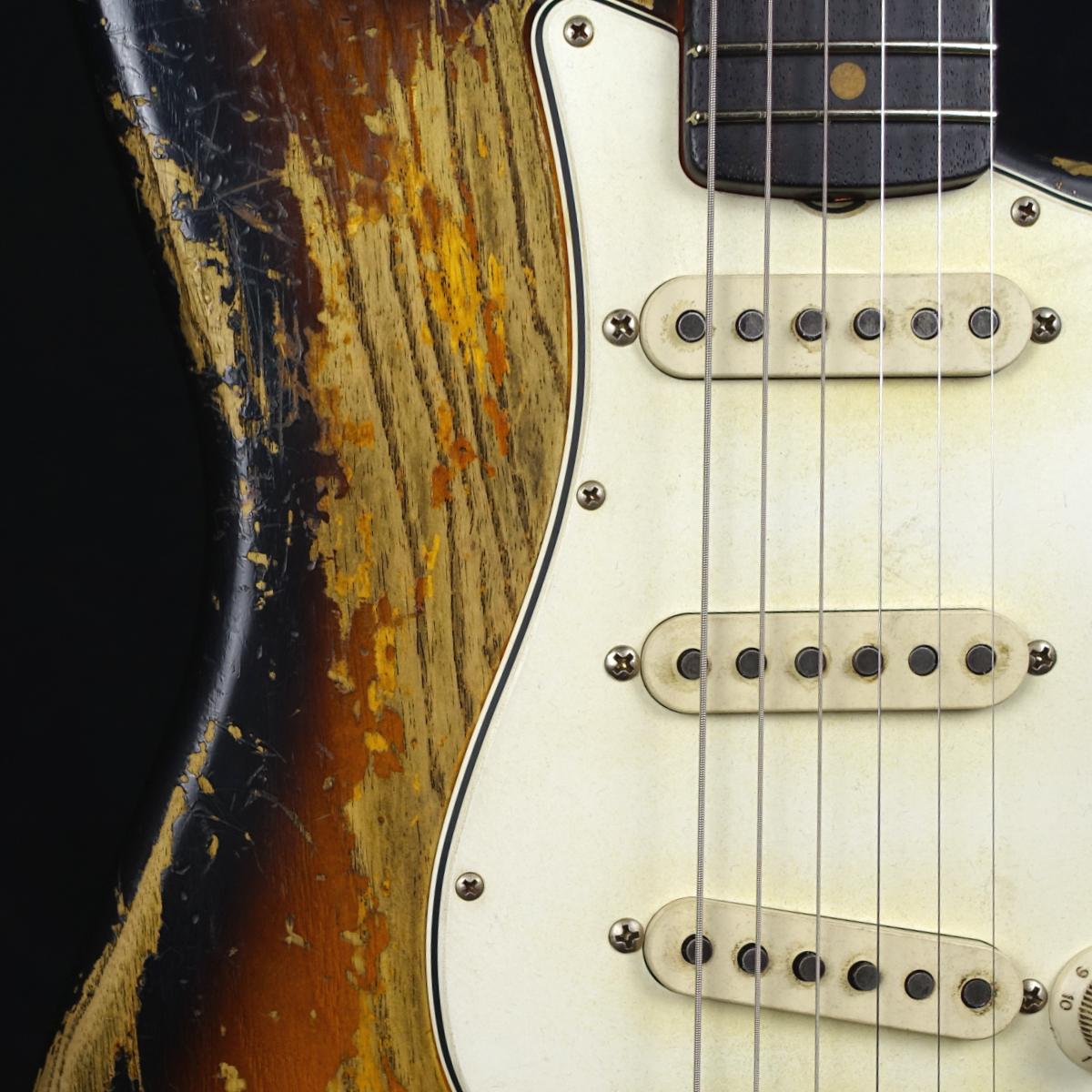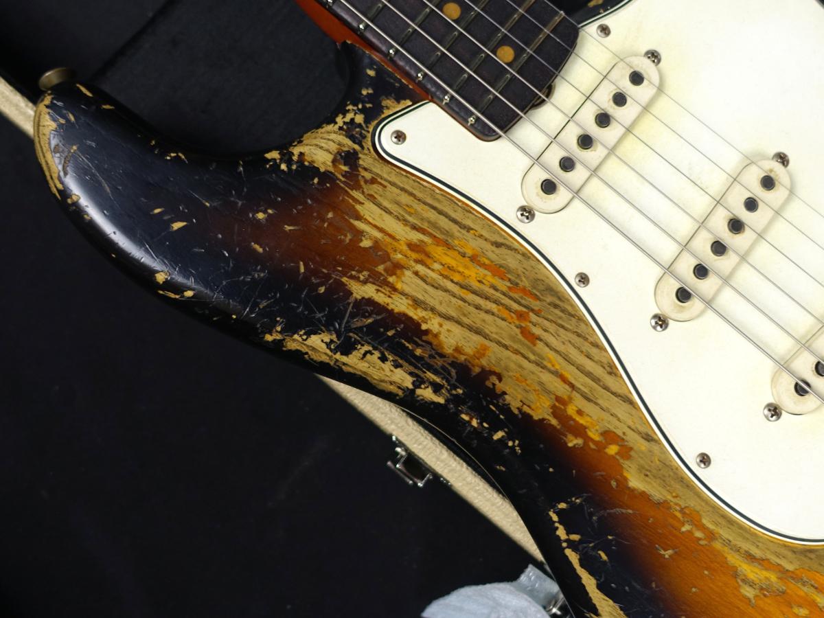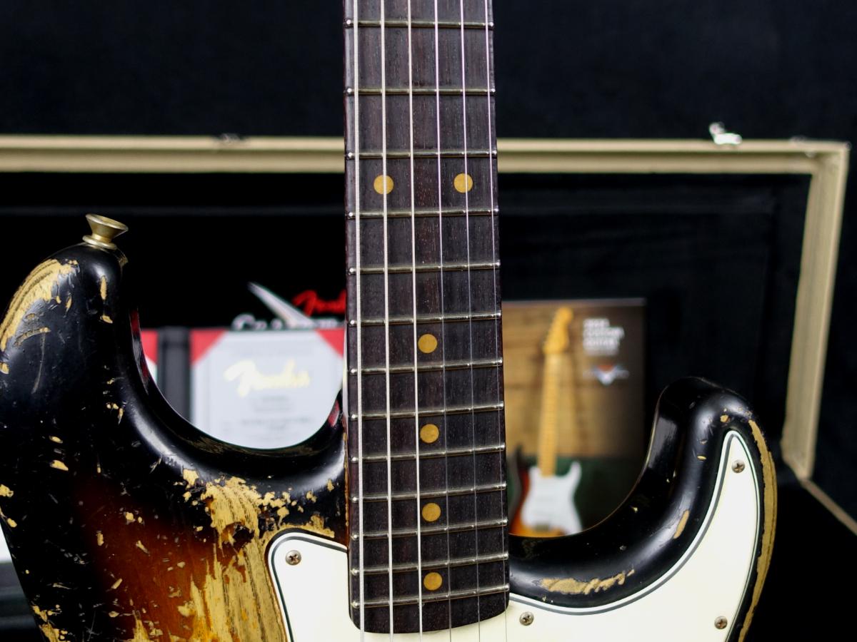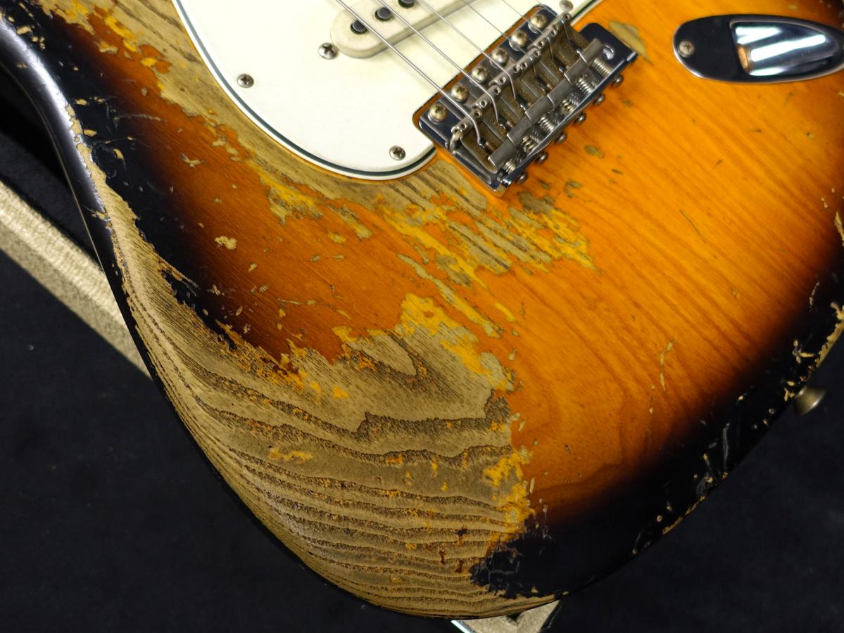 Levi Perry氏が製作したストラトキャスターにヘビーレリックが施された、"Fender Custom Shop MBS 1960 Stratocaster Heavy Relic 2-Tone Sunburst by Levi Perry"