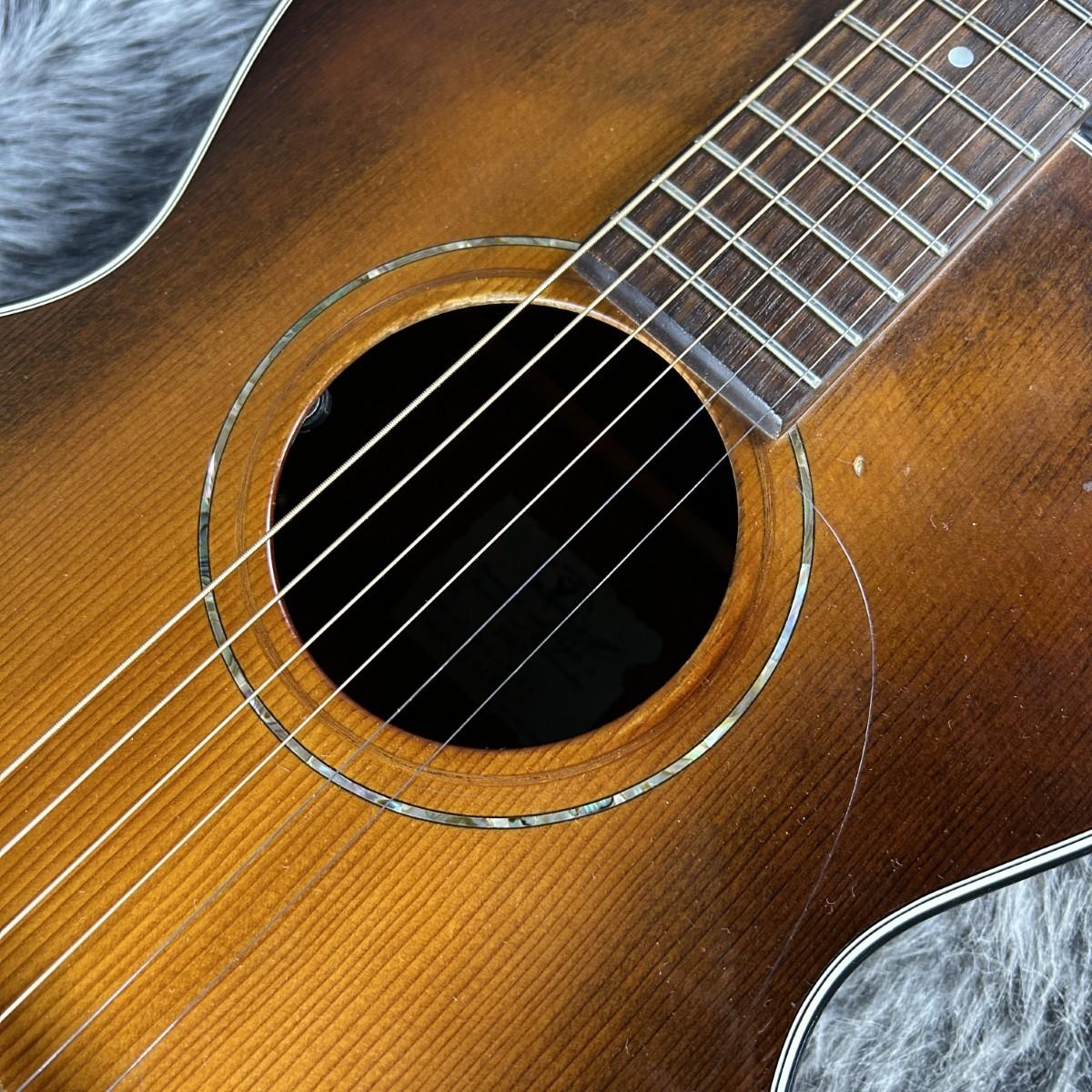 スプルース単板トップにマホガニーサイドバックを採用したコンパクトなボディサイズ。