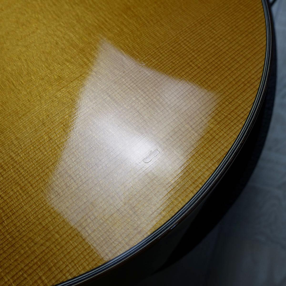 スプルーストップ、ローズウッドサイド&バック、マホガニーネックにエボニー指板のウッドマテリアル。ナット幅は44.5mm、スケールは25.5inch(647.7mm)。