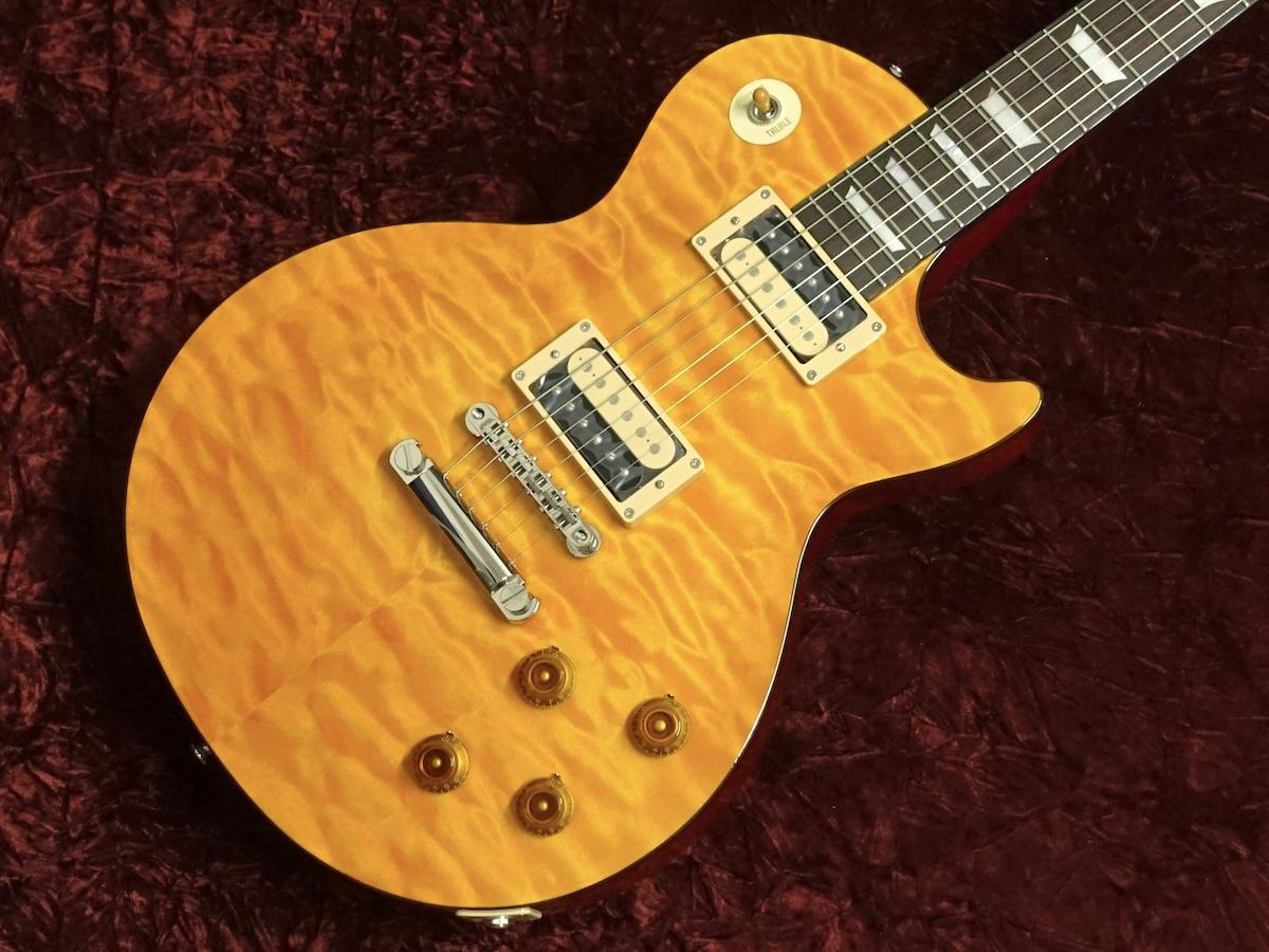 メイプルトップ2ピースマホガニーバック、1ピースマホガニーネック、ローズウッド指板という定番スペックをベースに、ゴージャスなキルトメイプルをあしらいオープンカバー/ゼブラボビン仕様のオリジナルハムバッカーPAF Vintage MK-2、トートイズ柄セルバインディングを採用したマニアック仕様で仕上げた一本です!