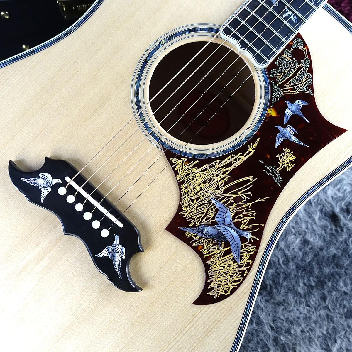 ヘッドストック上に7羽、指板上に16羽、ピックガード上に3羽、そしてブリッジベース上に2羽であり、それぞれが別々の表情をしている点が魅力です。