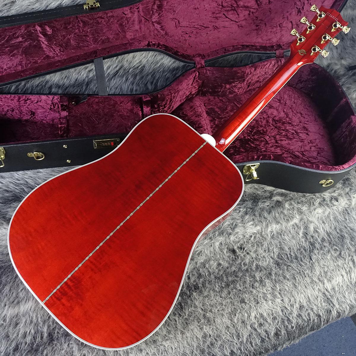 スクエアショルダー・ボディの伝統的なダヴ・シェイプに、トップ材にはシトカ・スプルース、サイド&バックにフレイム・メイプルを使用。