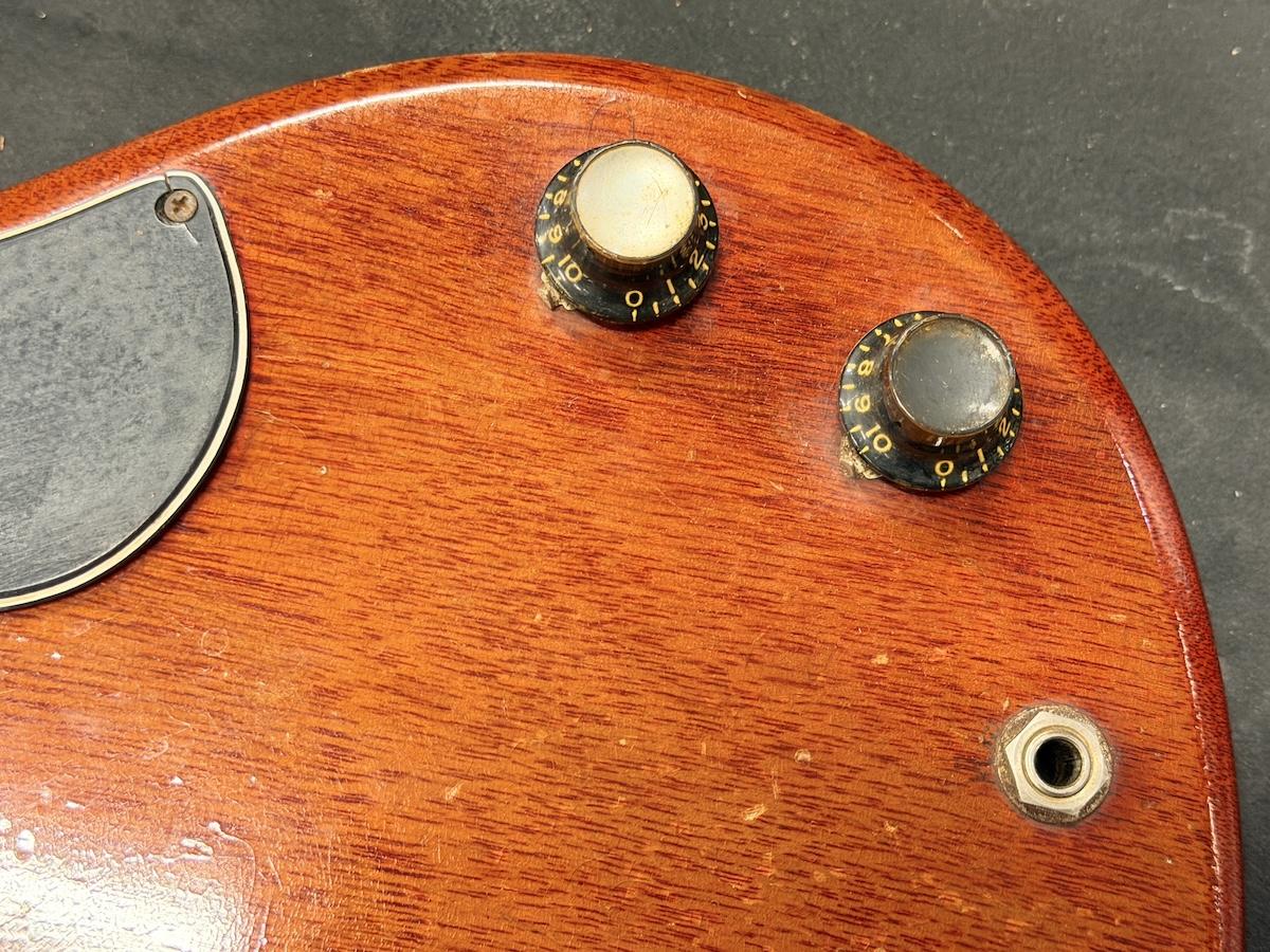 確認できるポットデイトは1964年で、シリアルレンジも1964年に該当。ペグ、コントロールノブ等の主要パーツはオリジナルを保っております。また明確な理由は不明ですが、ピックガードはおそらく上からラッカーが塗布されている状態です。