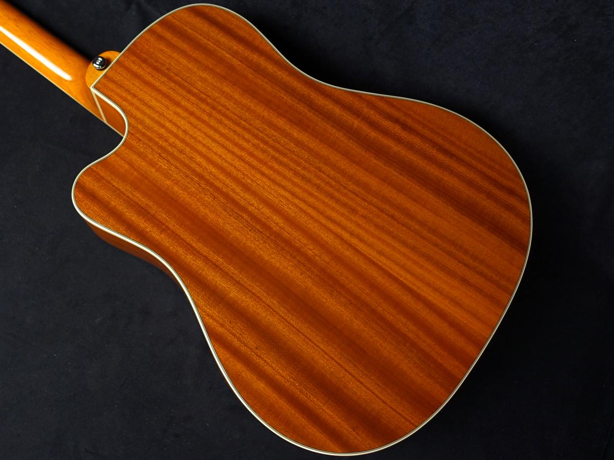 ボディマテリアルは、合板マホガニーボディ、トップには単板スプルースを使用。