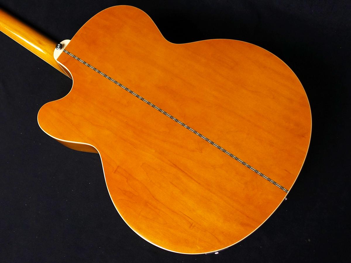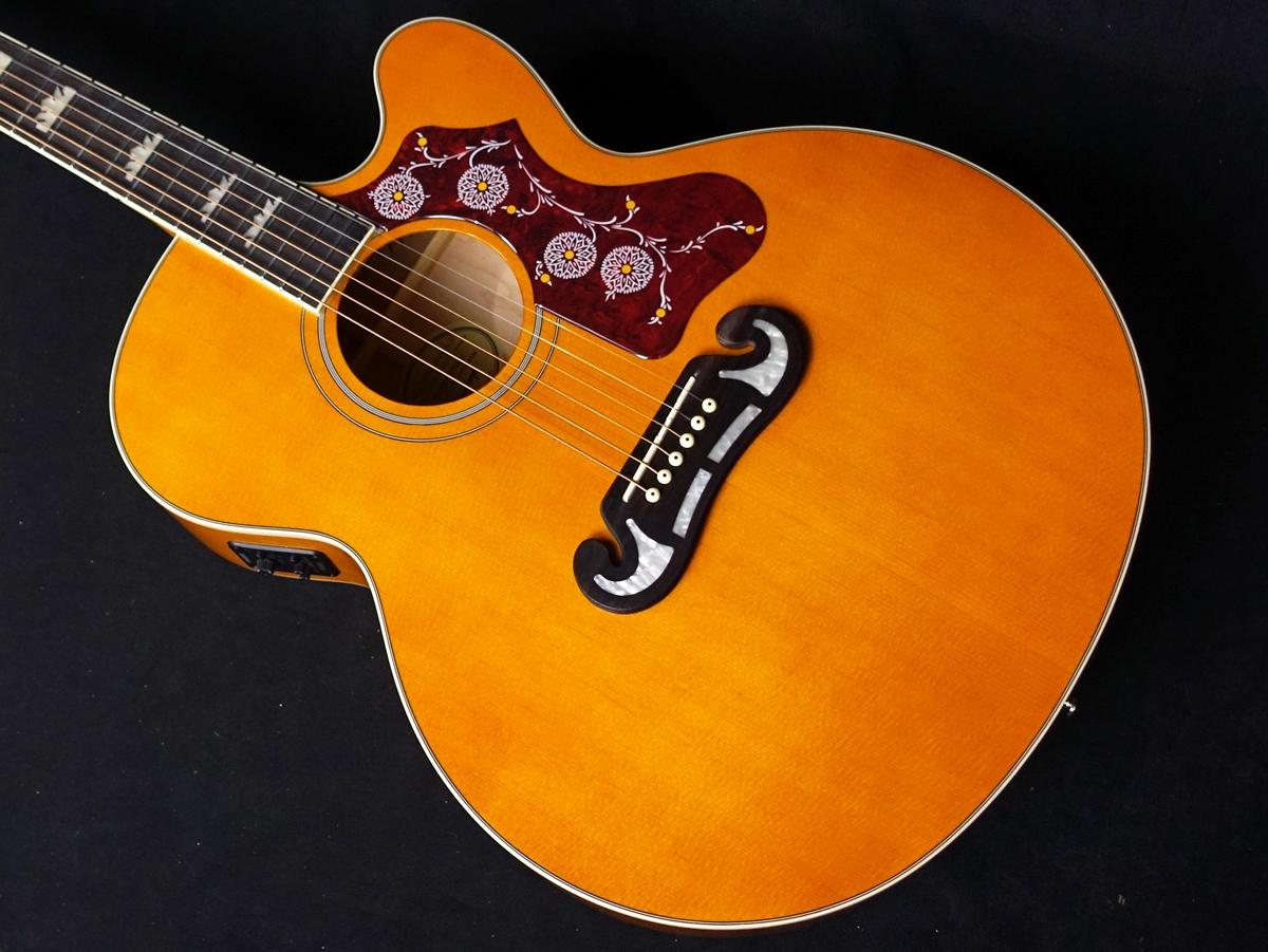 カッタウェイ付きのスーパージャンボ・ボディをベースとし、良質なメイプル材によるバック&サイド、抜群のトーンを誇るソリッドスプルース・トップ、スムーズな演奏性を約束するスリムテイパーDプロファイル仕様のハードメイプル・ネック、パウフェロー指板、20ミディアムジャンボ・フレット、ギブソンJ-200由来の品位あるパーロイド・クラウンインレイを備えています。