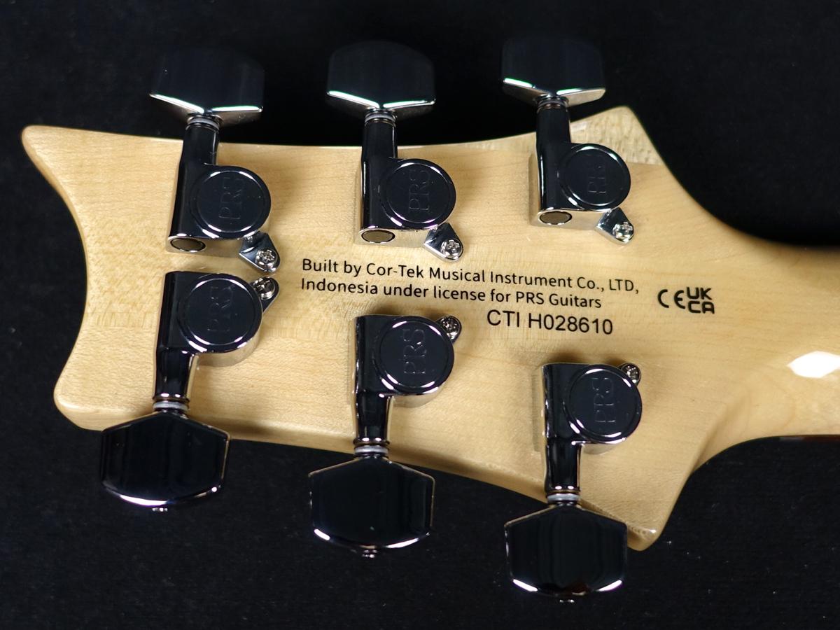 ブリッジ、またペグ、ピックアップは全てPRSデザイン。ネックシェイプはワイド・シンで弾きやすさを感じさせてくれます。