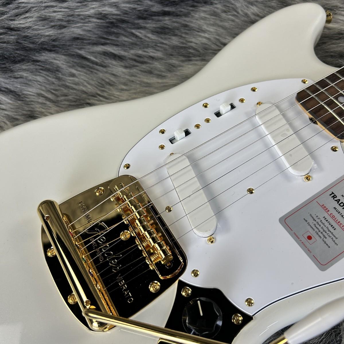 製品スペックとしては、グロスフィニッシュのバスウッドボディ、メイプルメック、ローズウッド指板。22本のヴィンテージスタイルフレットを装備した9.5インチラジアスの”U” シェイプメイプルネックがTraditionalシリーズならではのクラシカルな演奏製を提供します。ダイナミックヴィブラートテイルピース付きのフローティングブリッジ、Single-Coil Mustangはリアルで音楽的なヴィンテージトーンを奏でます。細めに設計されたナット幅は日本のプレイヤーにも弾きやすい仕様となっています。