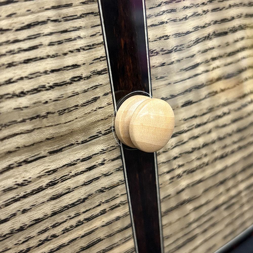 ボディバック中央には白い木地が美しい『栃の木』を入れた3ピース構造。