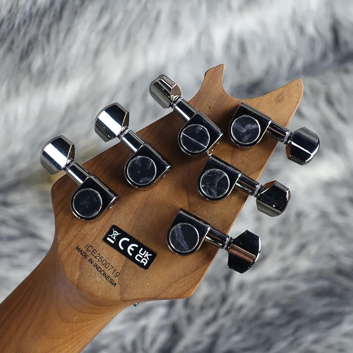 その他、快適なプレイアビリティとスピードを追求し、オイルフィニッシュのネック、丁寧なエッジ処理がされた12~16インチコンパウンドラジアスベイクドメイプル指板に22ジャンボフレットと黒のドットインレイをフィーチャーしています。