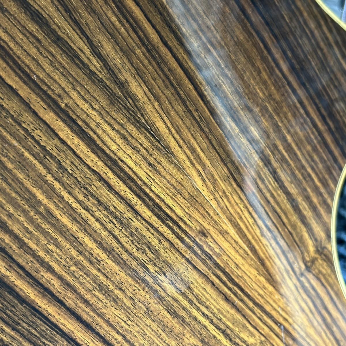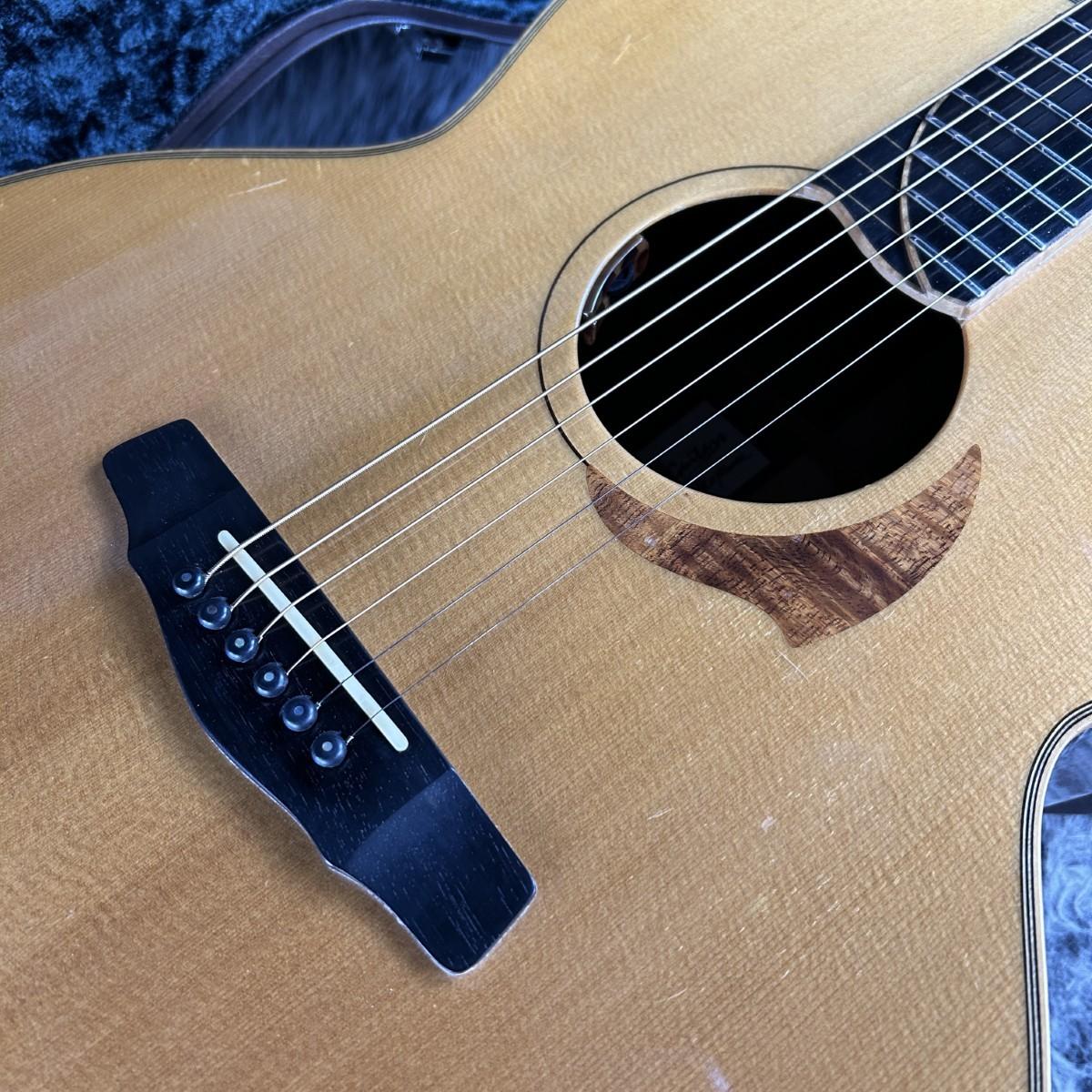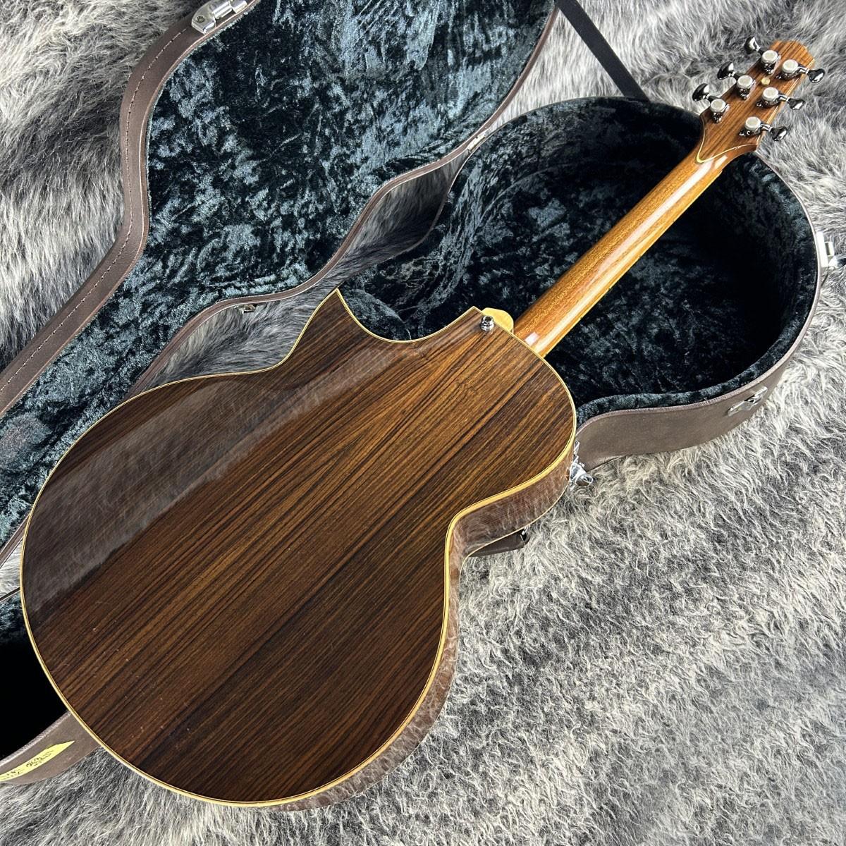ボディ材はモデル名よりおそらくイングルマン・スプルーストップ/インディアンローズウッドサイド/バック、マホガニーネック/エボニー指板を採用。