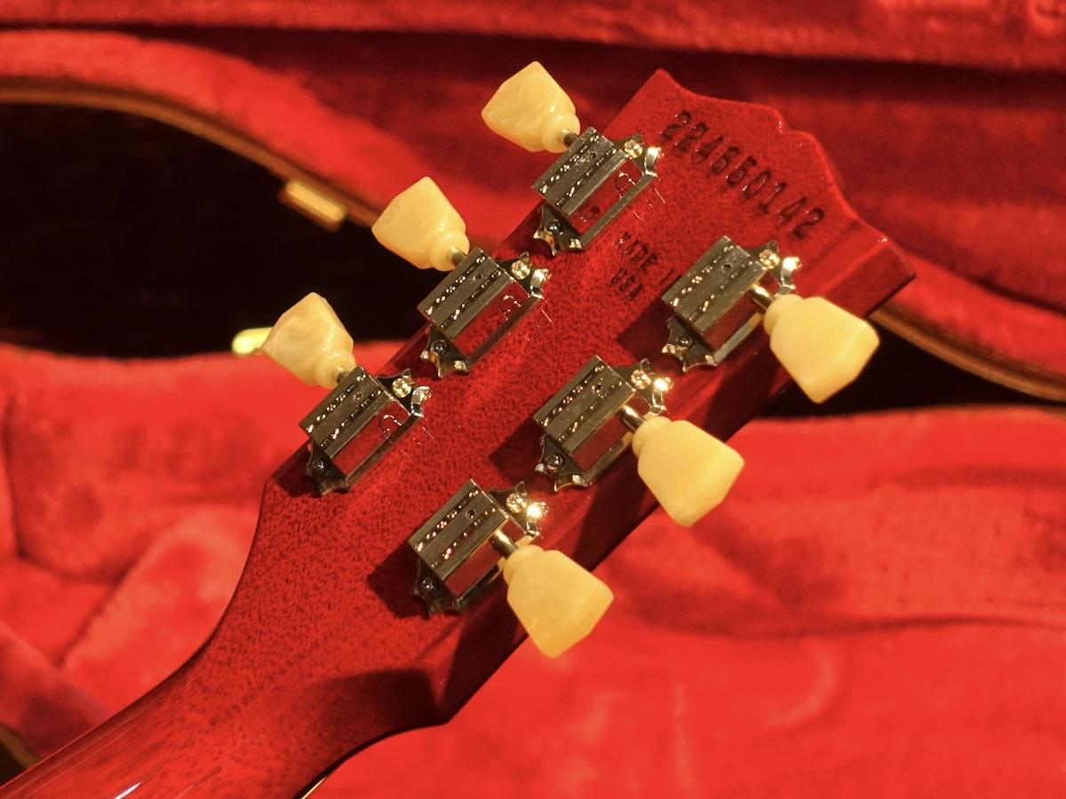 クルーソンスタイルのペグ、ハットノブ、しっかりとした厚みのラウンドネックを採用するなど50年代のレスポールの特徴をしっかりと再現しています。