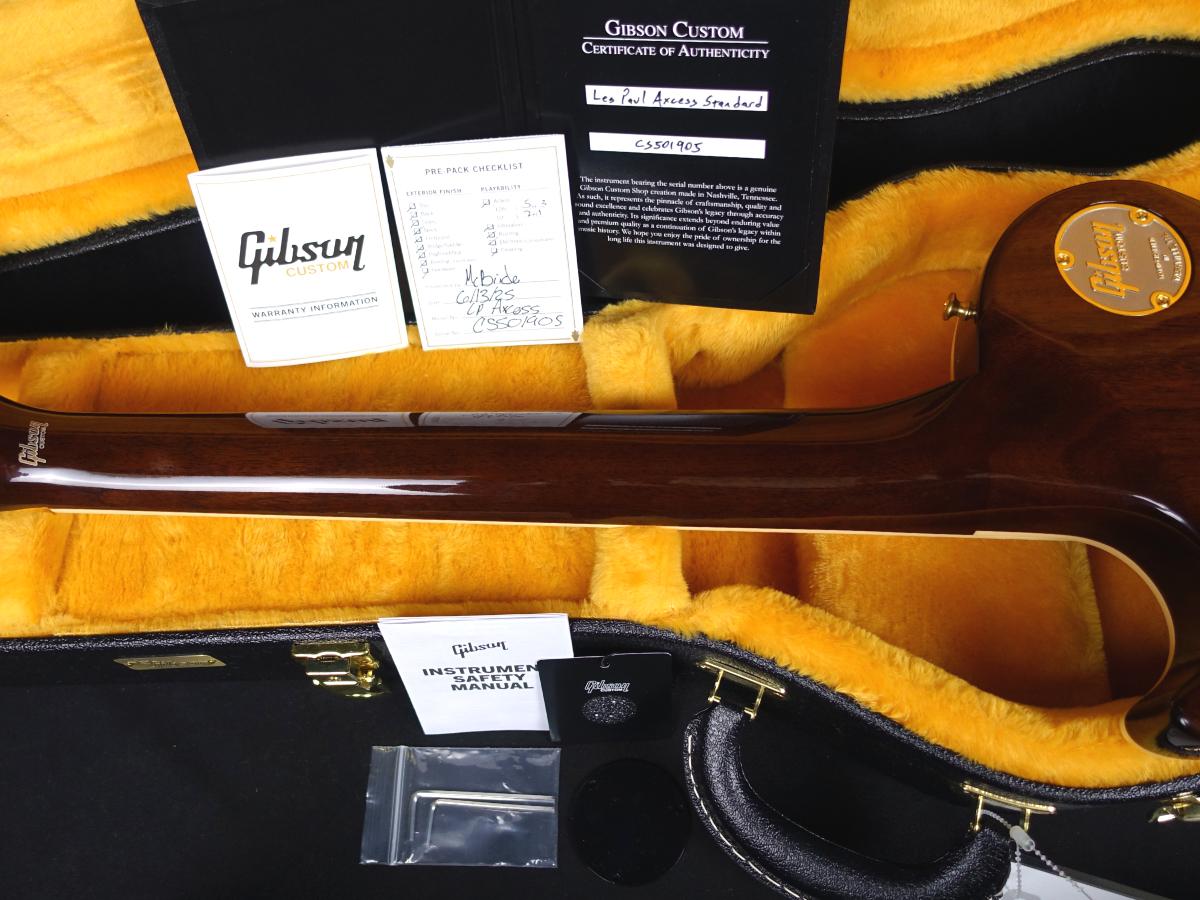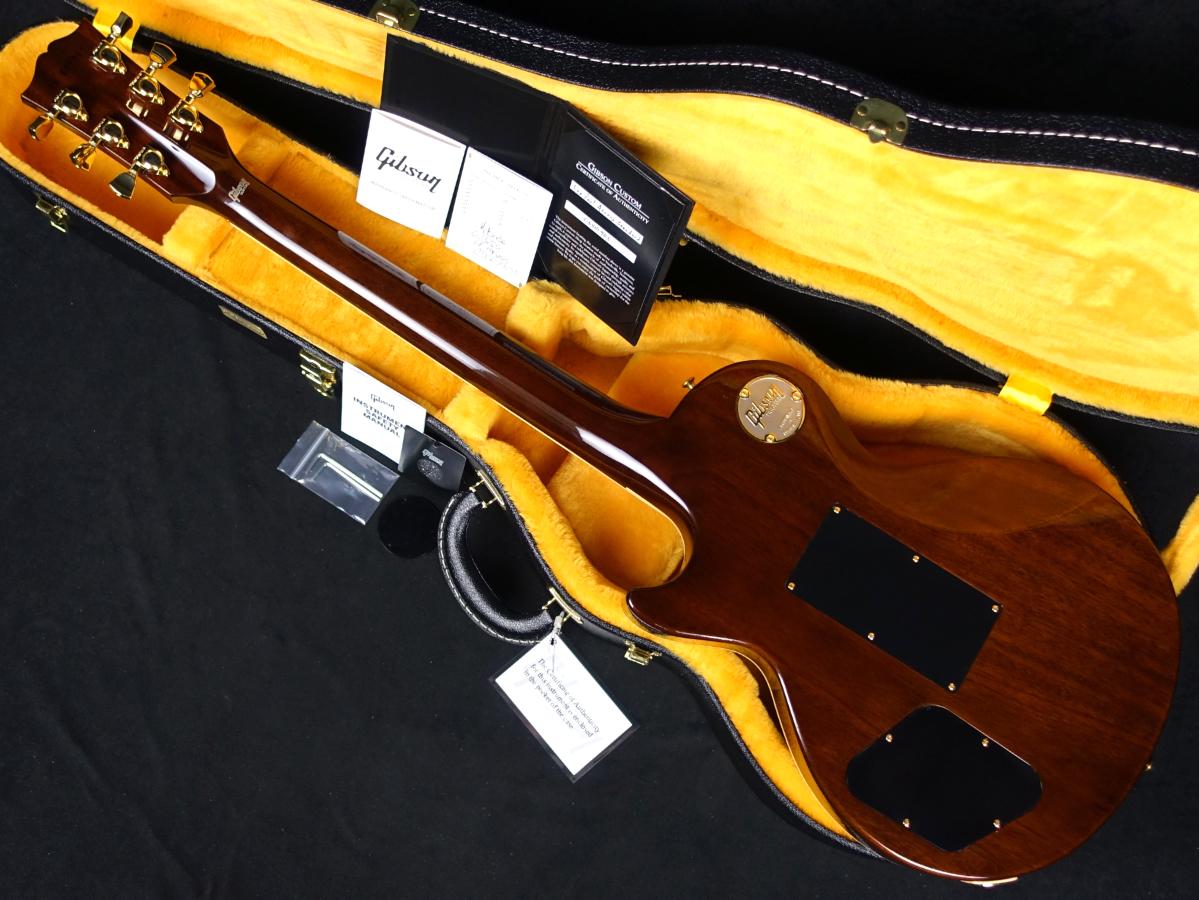 ギブソンカスタム(ナッシュビル)ファクトリーにて厳選したAAAフィギュアドメイプルを使用したメイプルトップ&9ホールウェイトリリーフされたマホガニーバックのボディにマホガニーネック&ローズ指板。
