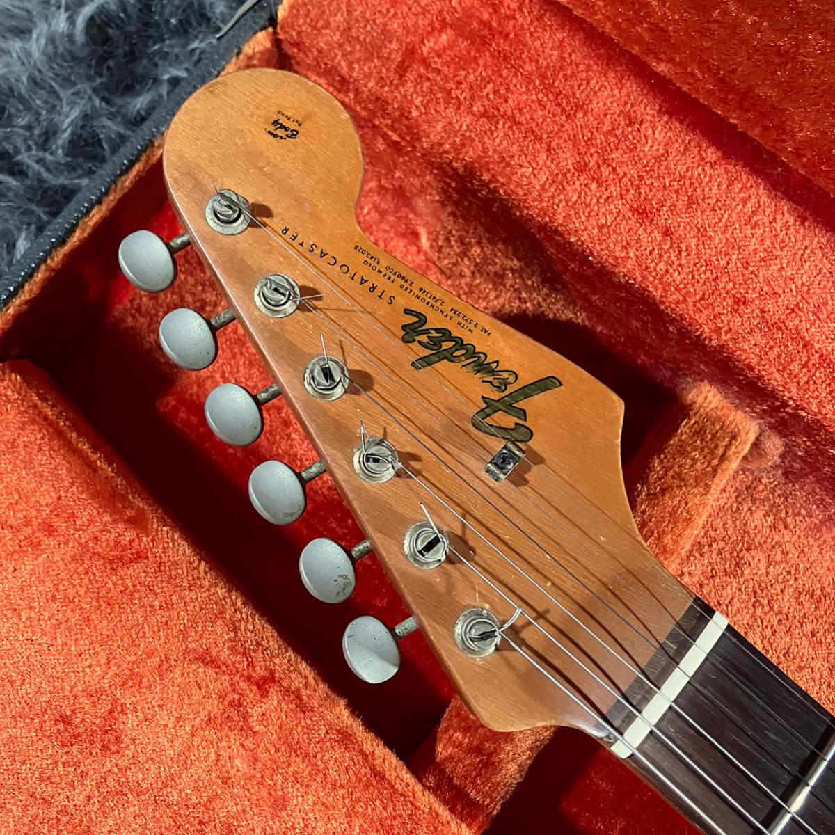 本機は64年デイトのネックやグリーン・ガード、65年シリアルのプレートとピックアップなど年を跨いだような仕様から、1965年製の中でもごく初期に製作された1本かと思われます。