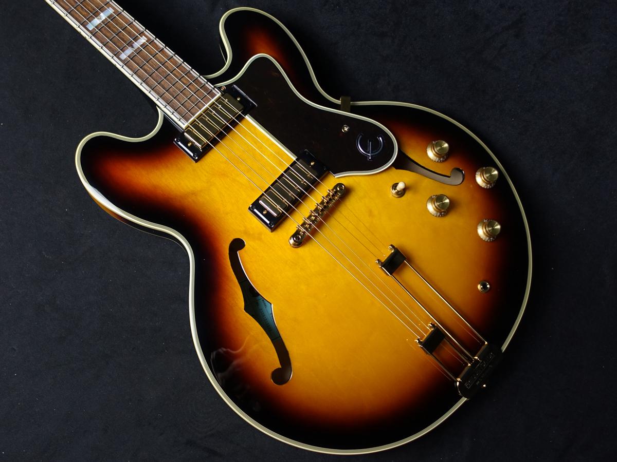 ヴィンテージスタイルのフリークエンセイタ―・スプリットトラピーズ・テールピースを含むゴールド仕様のハードウェアが、このEpiphoneの伝説的モデルのシンプルで時代を超越する美学に華を添えています。