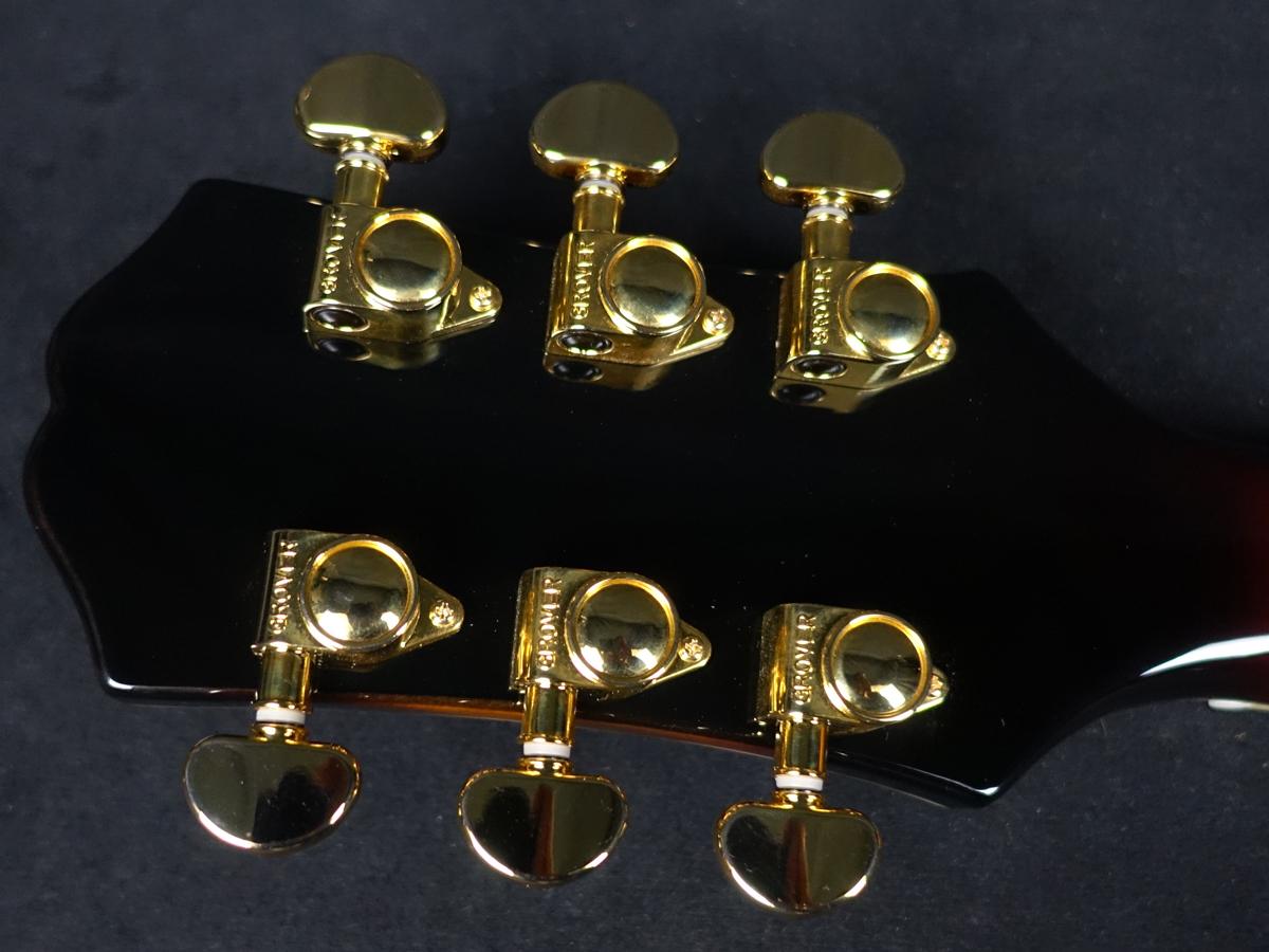 22フレット仕様のマホガニー・ネックはバインディング仕様で仕上げられ、インディアンローレル指板上ではアバロン素材によるトライアングル・インレイとマザーオブパール素材によるブロック・インレイが施されています。