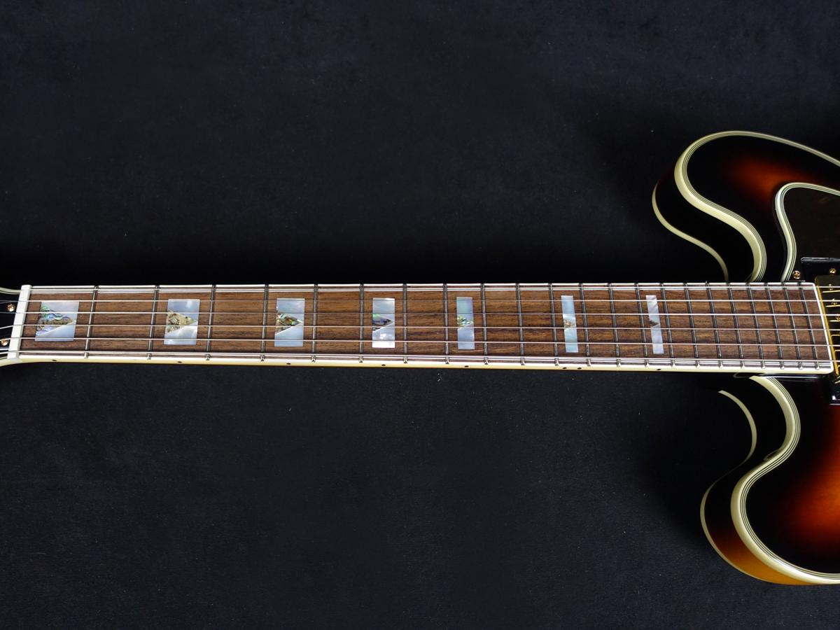 このエレガントな楽器は、レイヤード・メイプルから作られたセミホローボディが採用され、ハウリングに強いメイプルセンターブロックを備えています。