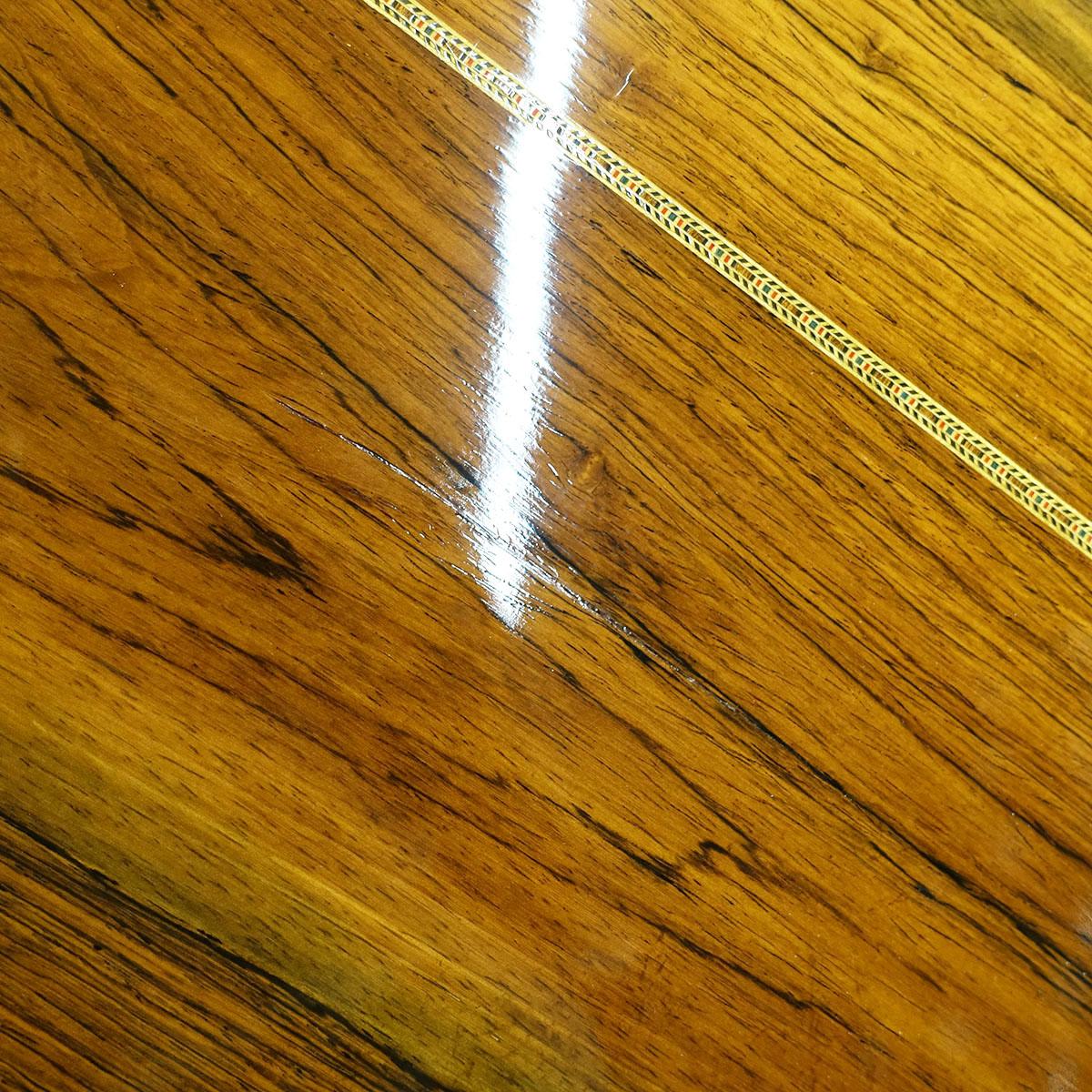 バックのハカランダ木目に沿ってニ箇所割れ補修後が見られます。パッチは無く軽度の割れで表面的な接着~塗装修正であったものと思われます。