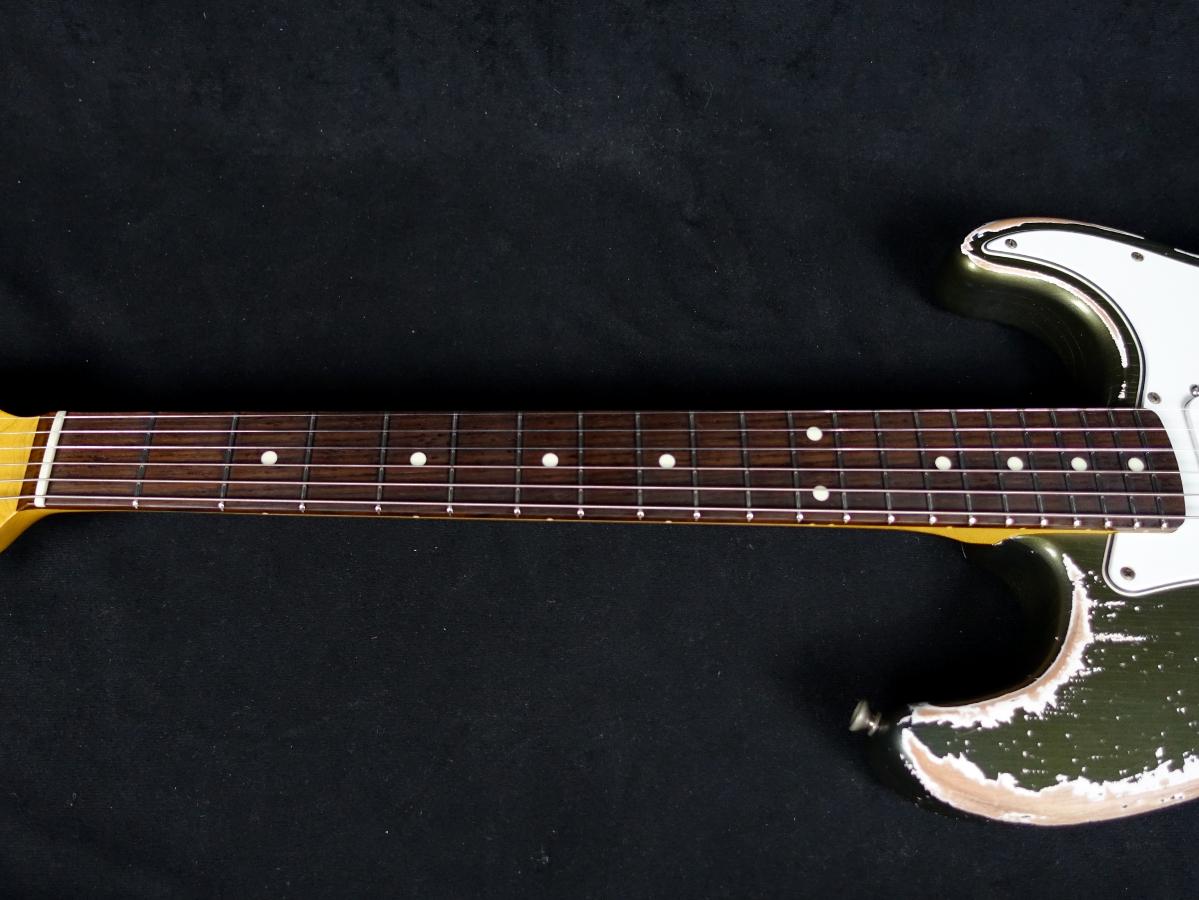 ボディは高品位なレリックワークで人気の高いMJT製(木目から判断しておそらくアルダー材)を使用、ネックはエイジングが施されたオールパーツ製のローズウッド指板メイプルネックを搭載。