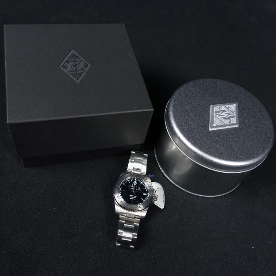バッテリーを使用しないゼンマイによる自動巻きのムーヴメントには信頼のあるセイコーインスツル株式会社製のNH35Aを搭載し、ケース/バンドは重厚感のある無垢のステンレス・スティール316Lを採用しています。