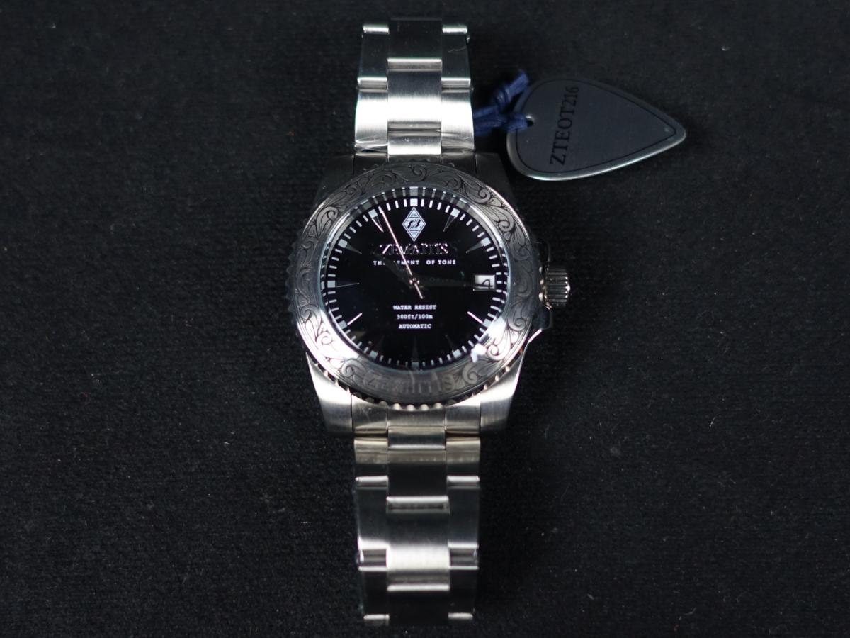 「ZTEOT216」は、ゼマイティス・ギターを象徴するメタル・フロントのデザインを投入し、無骨なロックの雰囲気とゼマイティスらしい気品さを併せ持つ高級腕時計です。