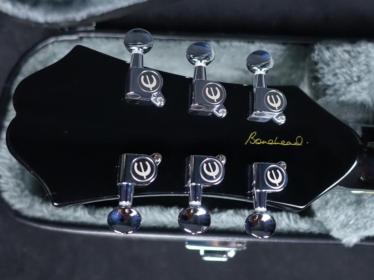 ナット上にて弦との摩擦が軽減されたGraph Techナット、Eロゴ入りで2層構造のクレセント・ブレット・トラスロッドカバー、マザーオブパールによるエピフォンロゴとギブソン・クラウンインレイ等、充実した仕様を誇ります。