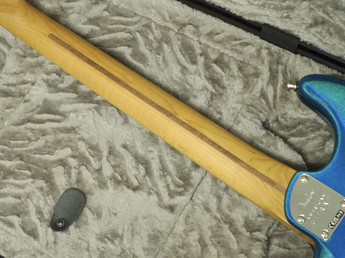 見る角度や光によって表情を変えるオーロラブルーフィニッシュは、ひと目でステージ映えを確信できる圧倒的存在感。ゴールドアノダイズドピックガードとの組み合わせも、限定モデルならではの特別感を演出しています。
