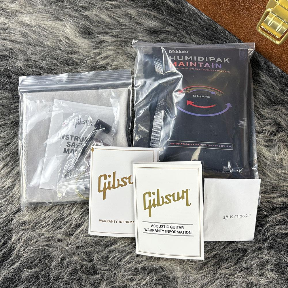 ボディトップにあしらわれた多層バインディングとボディバックのシングルバインディングは、僅かにアンティーク色がかった処理が施され、年季の入った味わいあるギブソンアコースティックギターの雰囲気を醸成するのに一役買っています。
