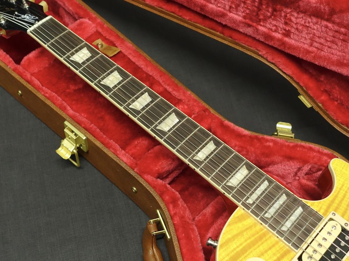 圧倒的な杢目のAAAフィギュアドメイプル、ウエイトリリーフのされていないマホガニーバック、ローズウッド指板に50s Vintageと名付けられたマホガニーネックを採用。